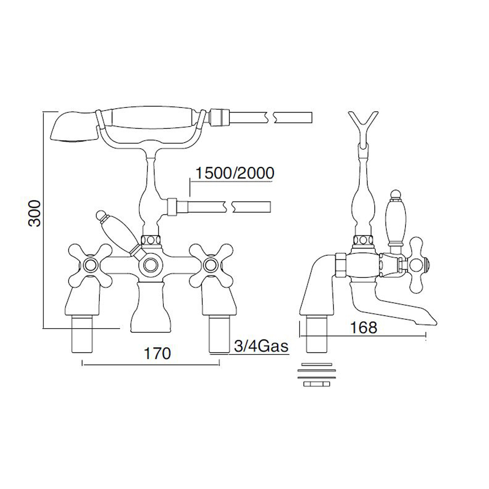 Regulator clasic pentru marginea căzii de baie cu duș manual din alamă lucrat manual fabricat în Italia.