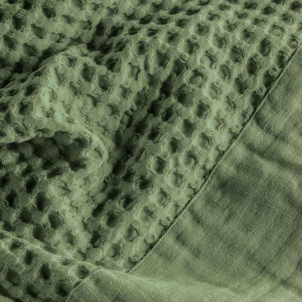 Halat de baie din bumbac tip fagure cu glugă și volan de in, vopsit în întregime