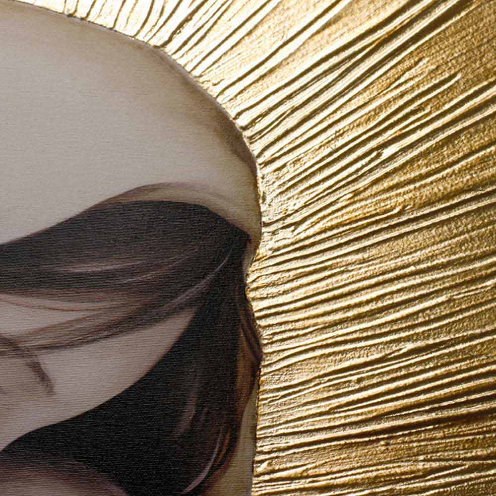 Decorate manual cu material înalt și frunze de aur pe structură de pânză.