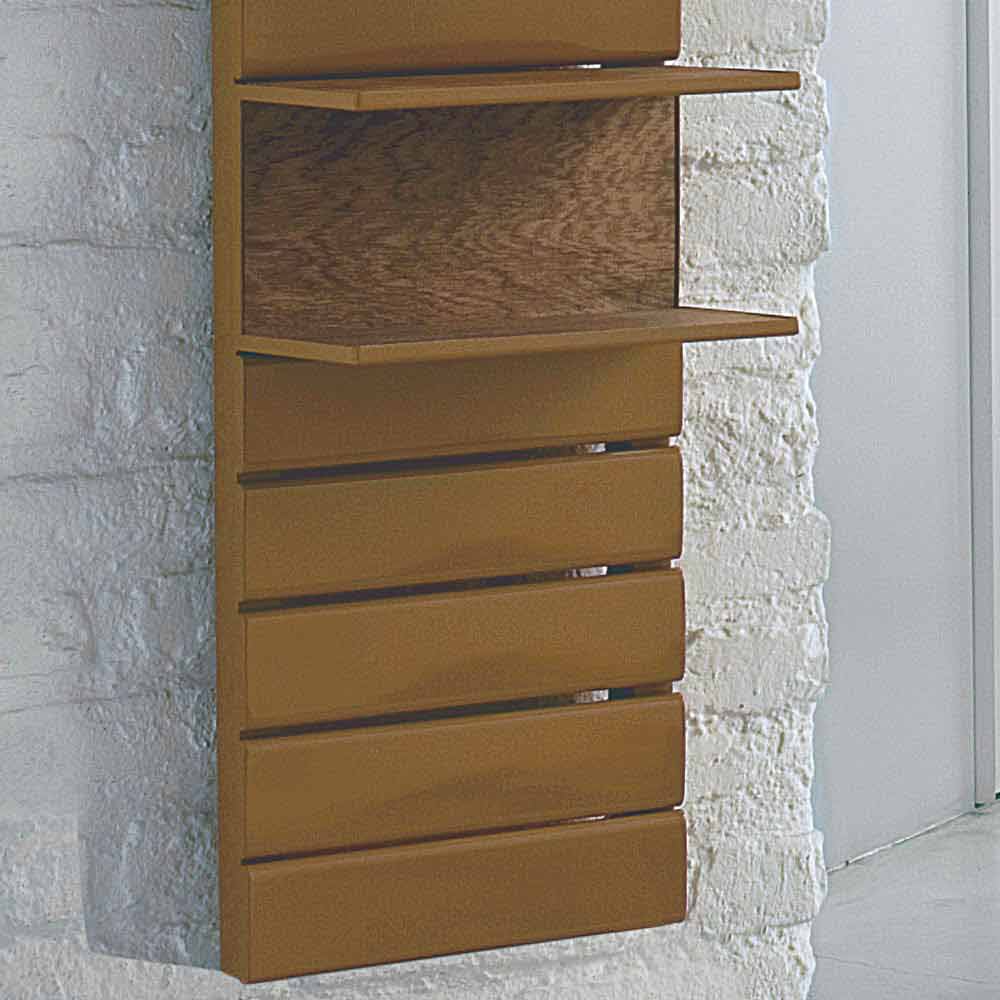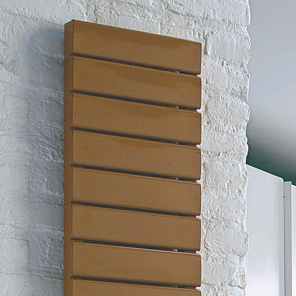 Radiatorul hidraulic, practic si functional cu design liniar, incalzeste si organizeaza fiecare mediu in care este introdus. Radiator vertical din otel colorat, complet cu rafturi (cum se vede in fotografie) cu spatar-rafturi si blat din stejar natural.