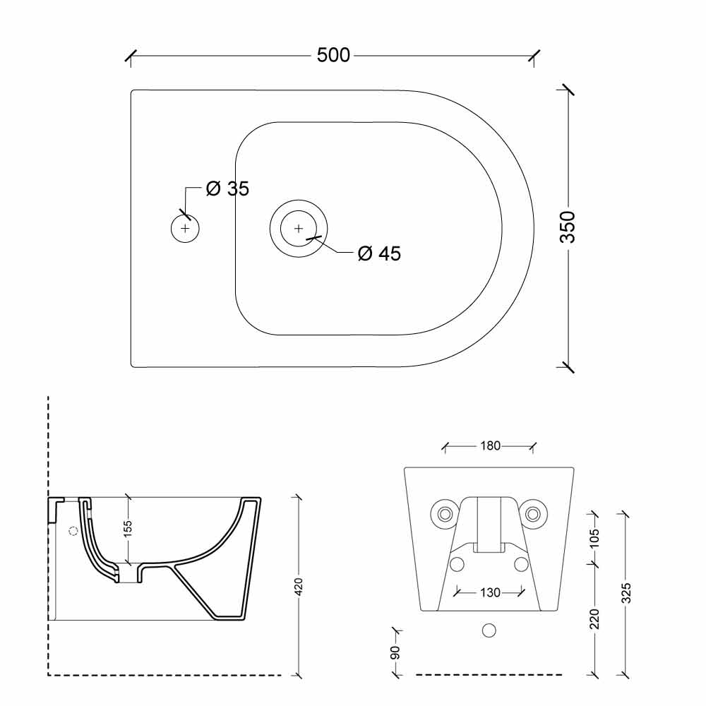 Bideu suspendat din ceramica modern Shine Square 50x35cm, fabricat in Italia