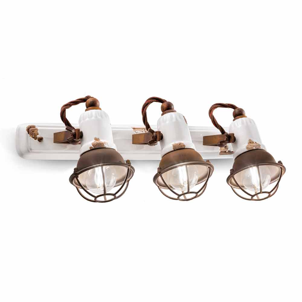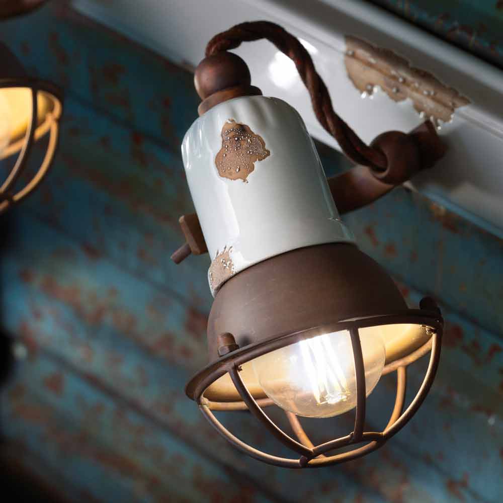 Lumina directionala, ceramica cu finisaje vintage in perfecta armonie cu metalul oxidat: o aplicatie unica in stilul sau, cu aroma antica, perfecta pentru cele mai rafinate medii.