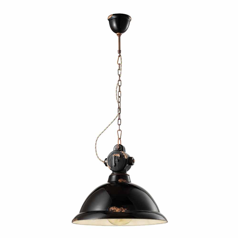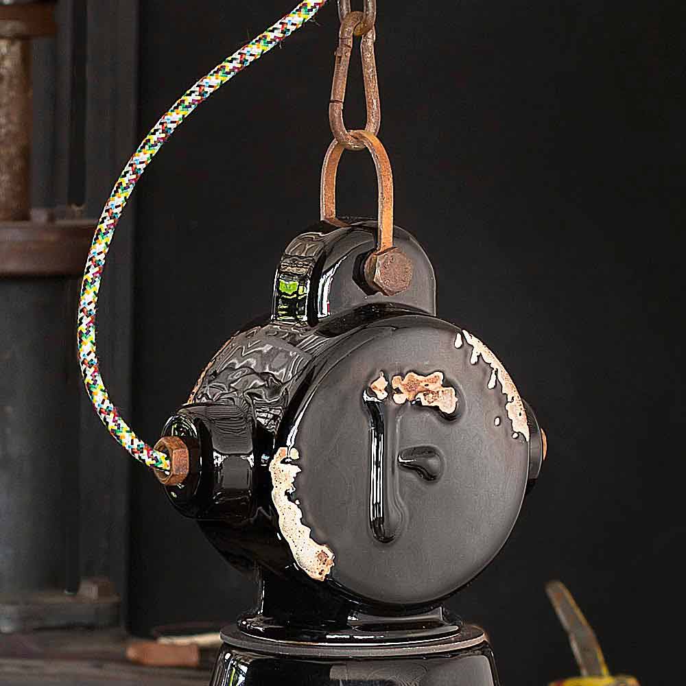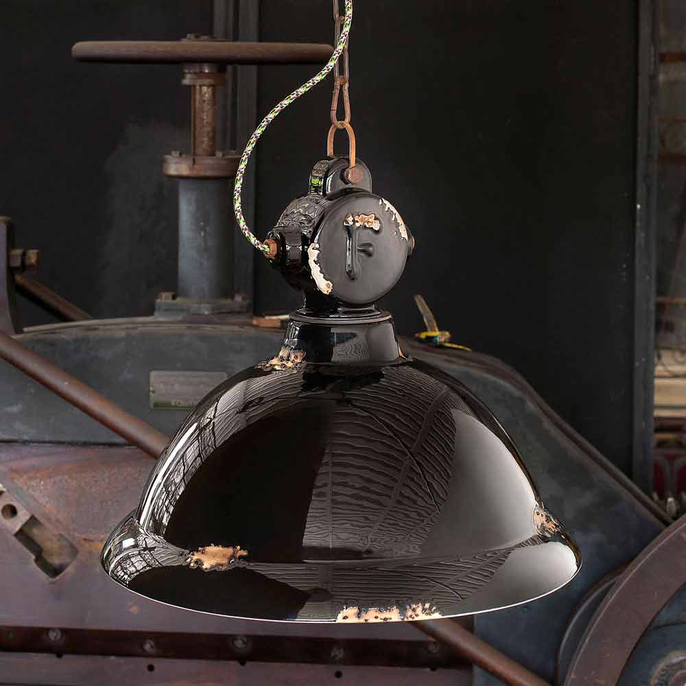 Particularitatea acestei lămpi constă în măiestria difuzorului ceramic. Ceramica, de fapt, este decorată în așa fel ca și când timpul și-ar fi marcat drumul. Reproducerea eroziunii timpului combinată cu suprafețele strălucitoare conferă acel plus valoare acestei suspensii. Acest efect uzat de timp îi conferă Angelei un stil vintage-industrial sofisticat. Structura metalică amplifică și mai mult efectul antic.