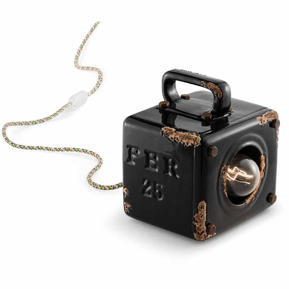Valerie este o lampă de masă fantastică, cu formă cubică și stil vintage-industrial, realizată manual de artizani pricepuți din Italia.