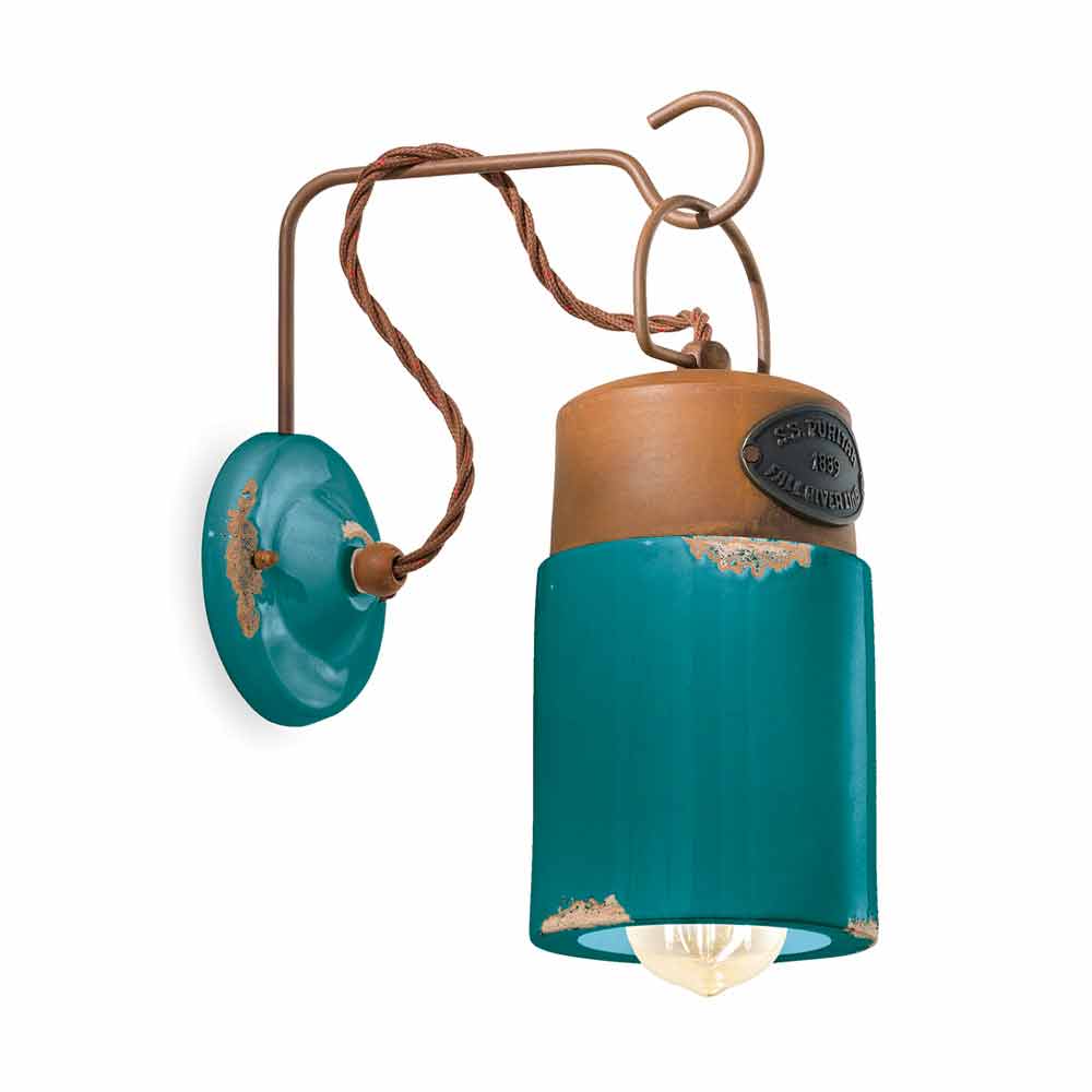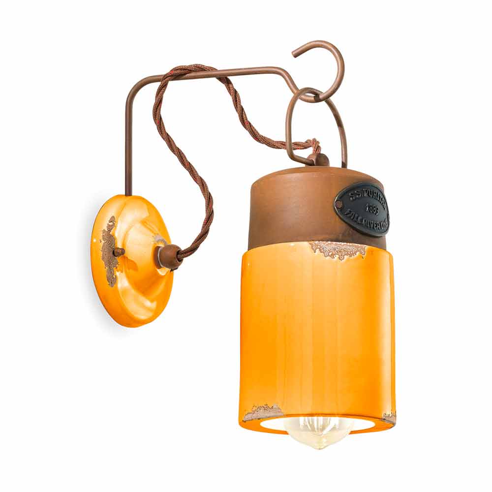 Această lampă frumoasă de perete este formată dintr-o structură din fier cu finisaj ruginit cu un difuzor din ceramică lucioasă, disponibil în diferite culori.