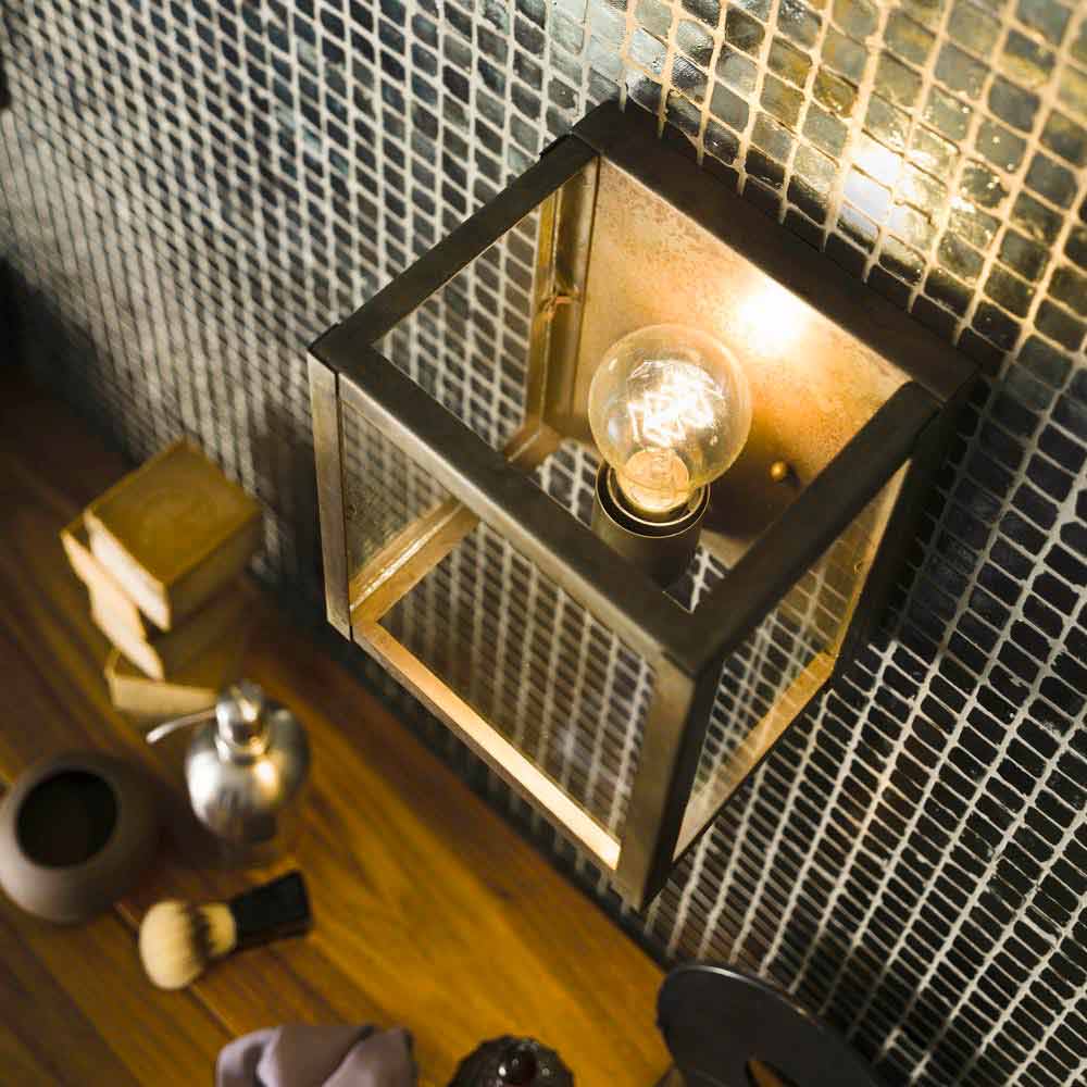 Lampa industriale din alamă și panou de sticlă Lumina
