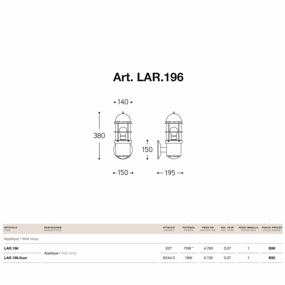 Acest articol nu poate fi vândut în SUA. Aplica de perete de exterior Attila de Aldo Bernardi, realizată din cupru antic și alamă antic, IP 44.