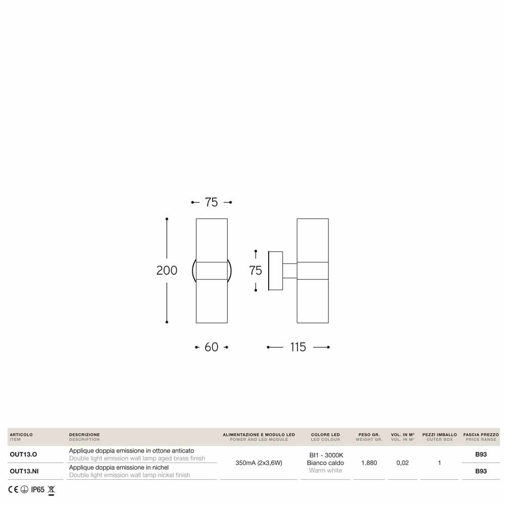 Modul de alimentare și LED 350mA (2 x 3,6 W) Culoare LED BI1- 3000K alb cald Greutate 1880 gr IP 65 Becul nu este inclus