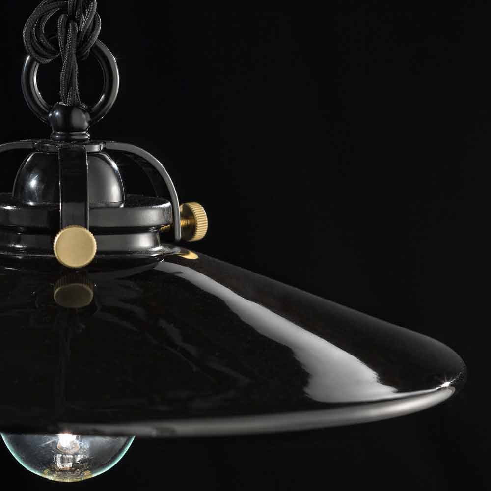 Lampa din ceramica, disponibila in doua finisaje diferite: negru lucios sau alb lucios.