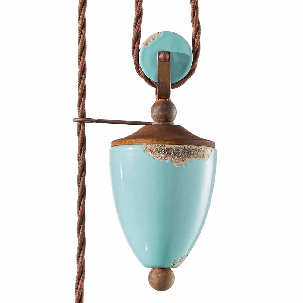 Lampă cu urcușuri și coborâșuri country din metal și ceramică Evelyn lucrată manual