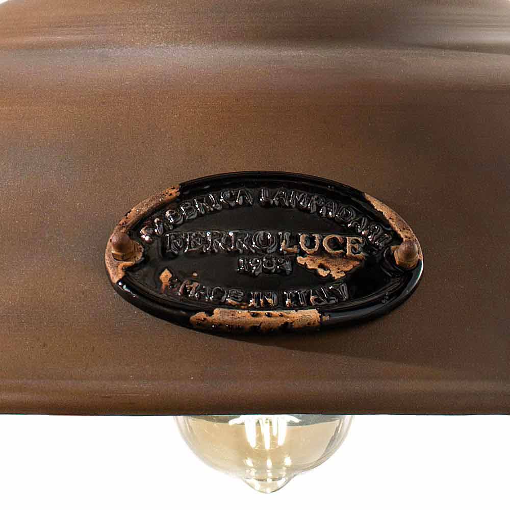 Această lampă frumoasă este formată dintr-un difuzor mare din metal anticat, în special din fier în finisaj corten - rugină.