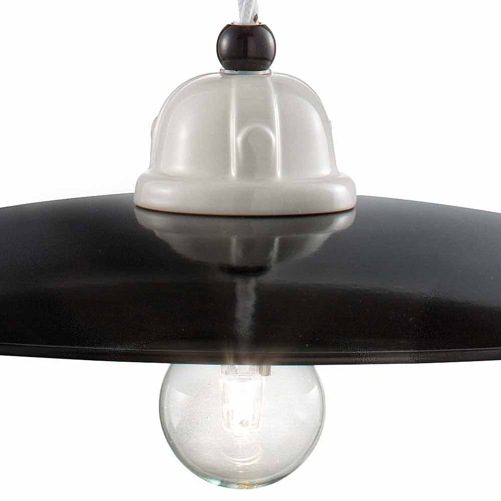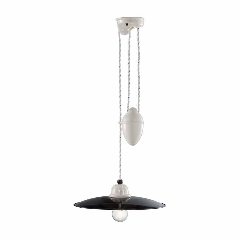 Lampa din ceramica neagra lucioasa, in ceea ce priveste finisajul exterior al difuzorului, in timp ce structura, rama si sarma au un finisaj alb lucios. Melissa este disponibilă în diferite dimensiuni.