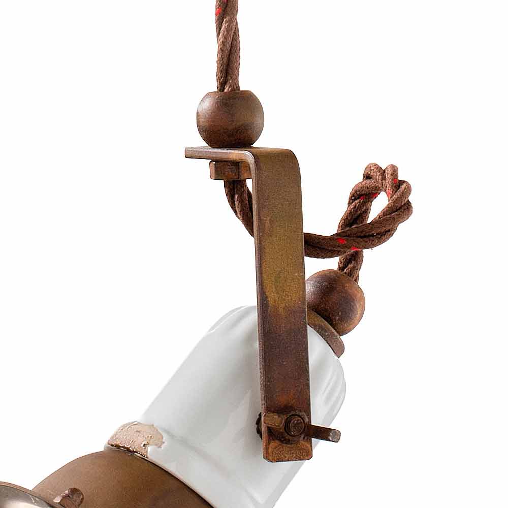 Lumina directionala, ceramica cu finisaje vintage in perfecta armonie cu metalul oxidat: o suspensie unica in stil, cu aroma antica, perfecta pentru cele mai rafinate medii.