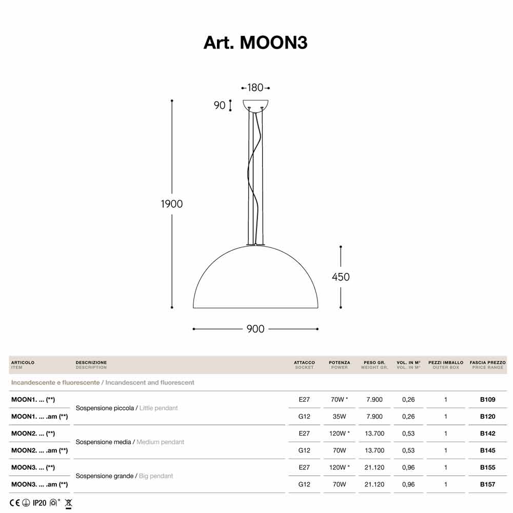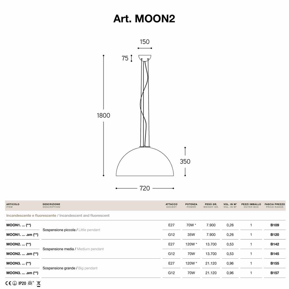 Acest articol nu poate fi vândut în SUA. Lampă suspendată din oțel cu design modern Moonlight de Aldo Bernardi, IP 20.