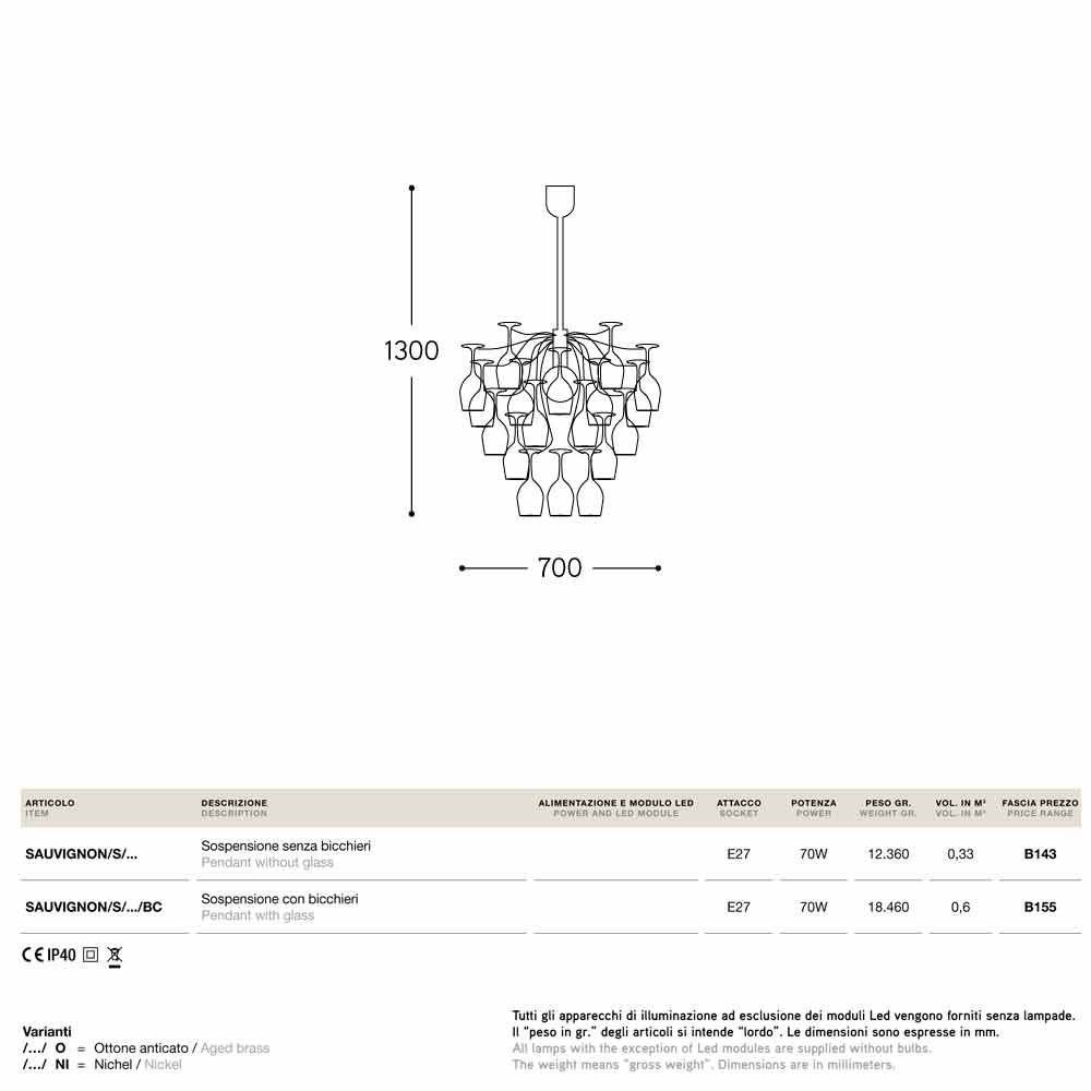 pandantiv lampa 30 pahare rasturnata Sauvignon