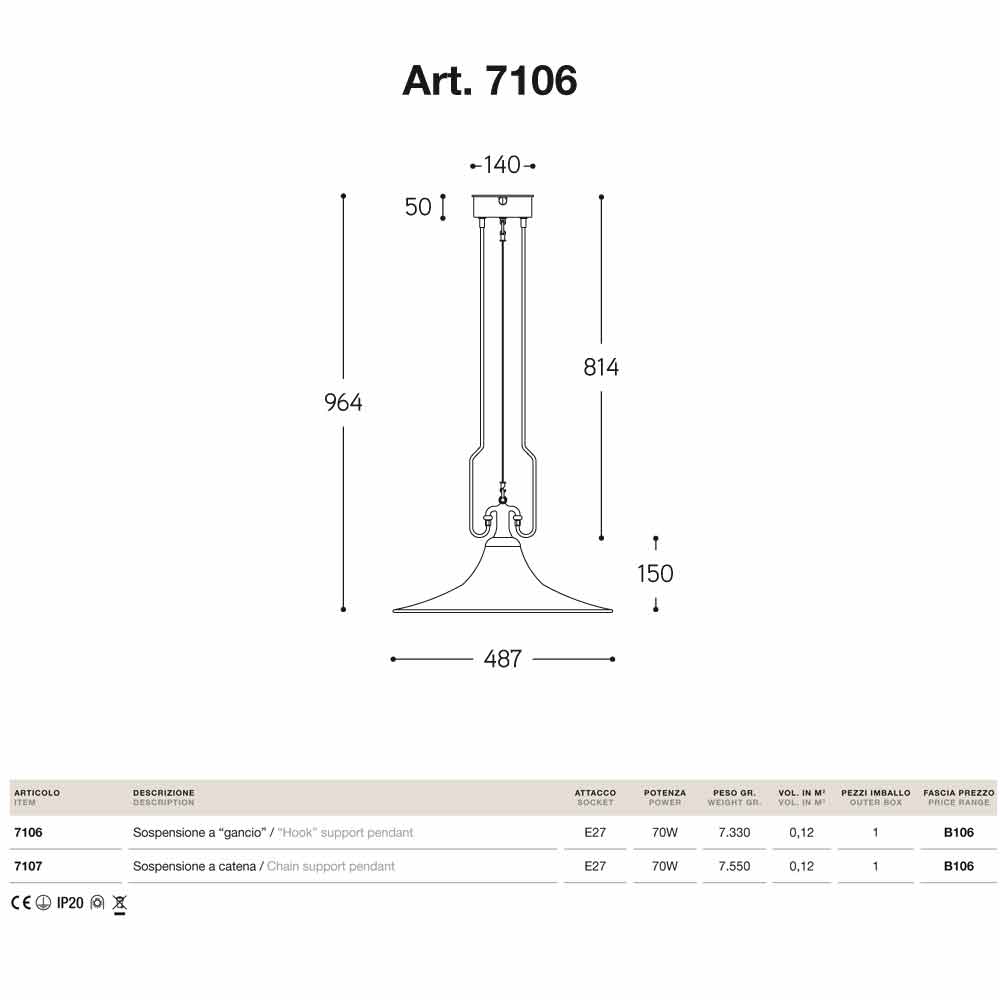 Lampă suspensie în alamă și cupru Mill cu cârlig Aldo Bernardi