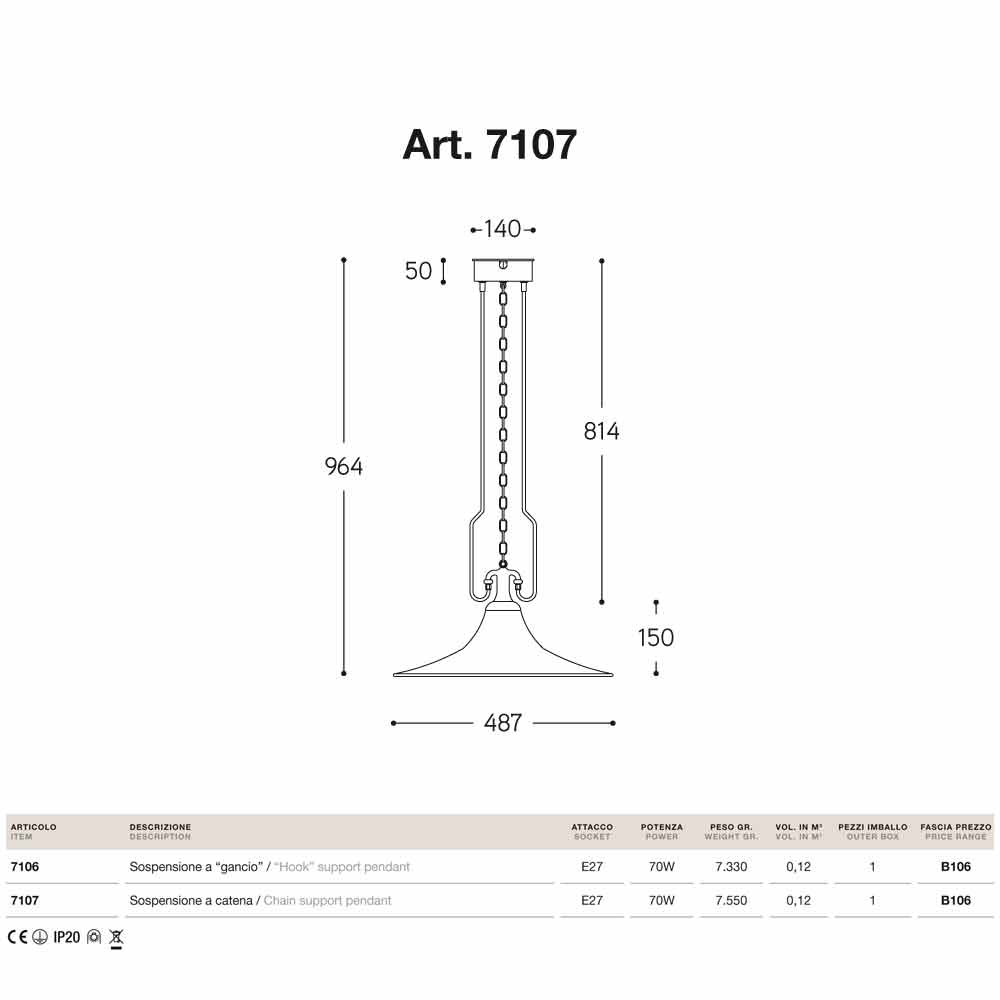 Greutate con gancio 7330 gr, con catena 7550 gr