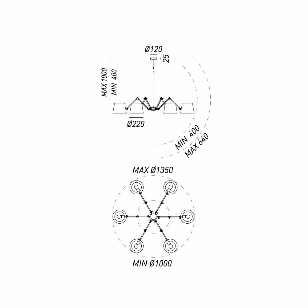 candelabru stil industrial în modelul de fier și alamă 6 lumini reglabile Reporter Il Fanale.