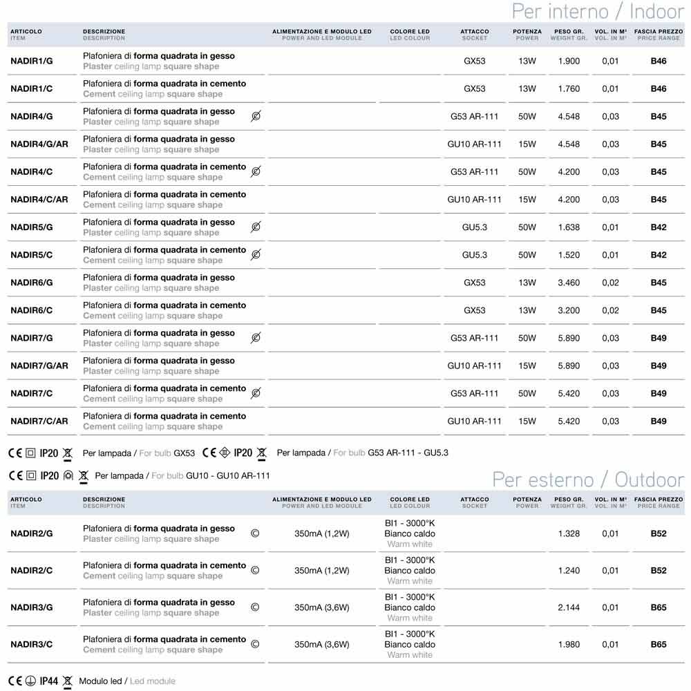 Plafoniera de design pătrat Nadir 5 de la Aldo Bernardi , disponibilă în variantă de beton sau tencuială.
