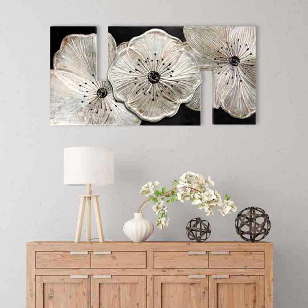 Structura dublă decorată manual, cu detalii de rășină și frunze de argint pe material, cu element central de relief.
