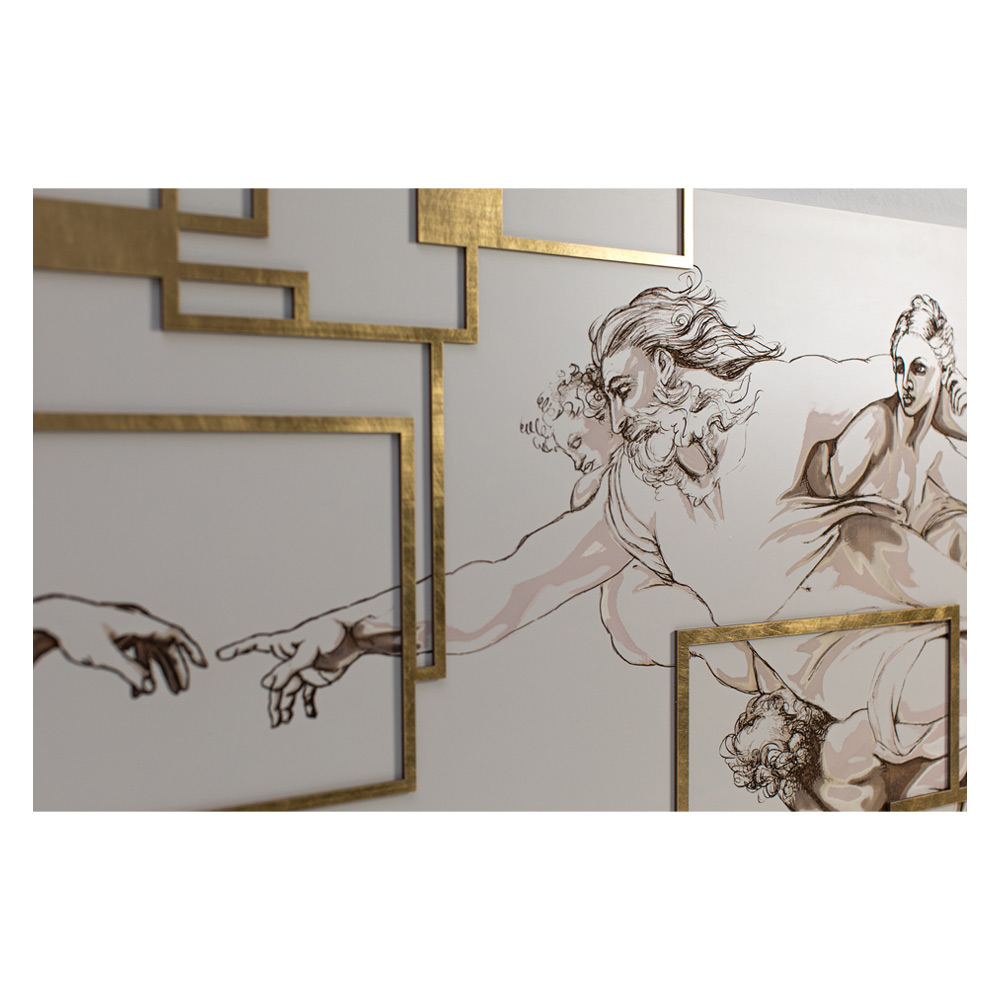Panoul este o tăblie unică care înfățișează piesa centrală a frescei lui Michelangelo din Capela Sixtină, „Crearea lui Adam” . Fresca este raportată cu pricepere în cele mai mici detalii datorită marcajului cu laser care creează nuanțe de culoare și profunzime . Cadru din lemn lăcuit alb mat cu marcare cu laser, o tehnică specială care creează un basorelief pe materiale.