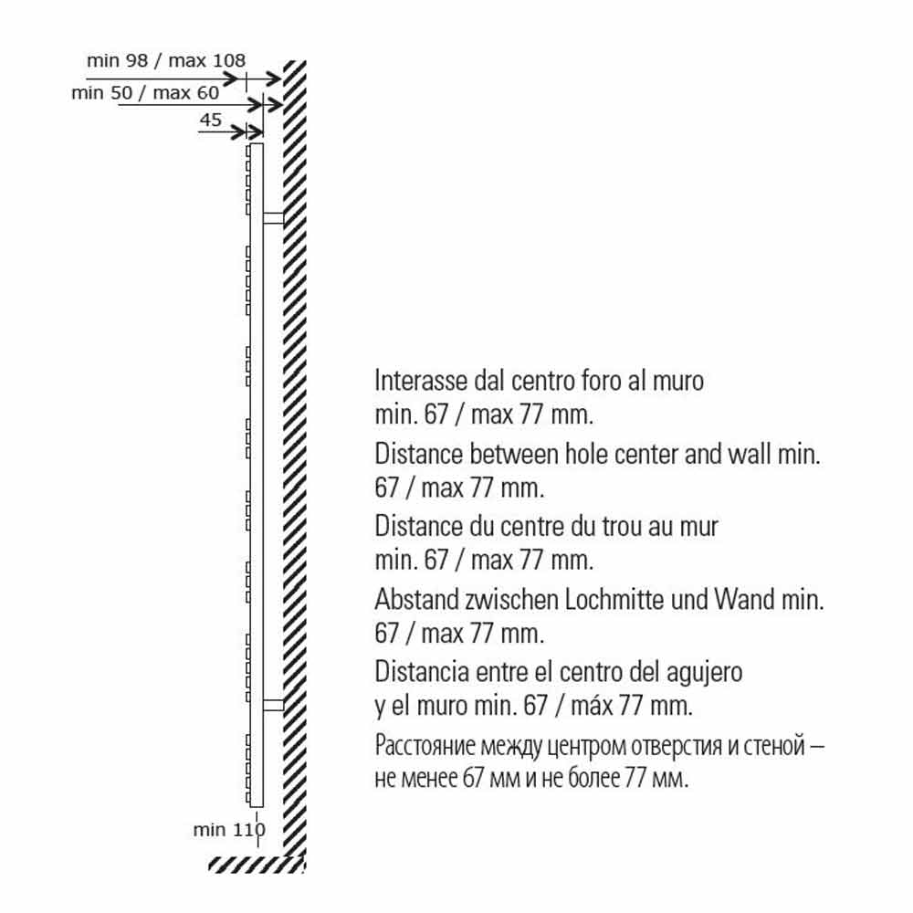 Încălzitor de prosoape din oțel, cu design vertical hidraulic, pe perete, fabricat în Italia.