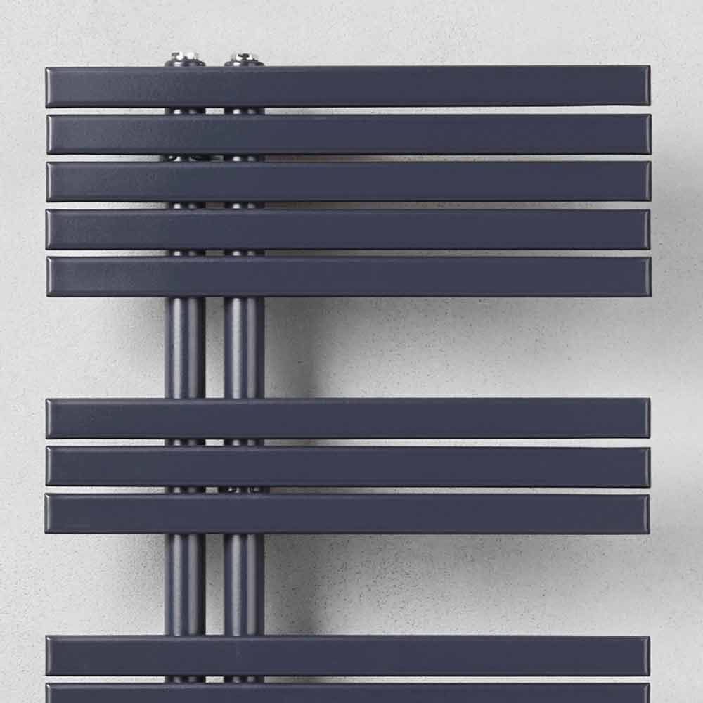 radiator încălzitor de prosoape are un design realizat cu tuburi verticale cu diametrul de 35 mm și lamele plate orizontale de 35 mm. Forma sa modernă și deosebită îl face