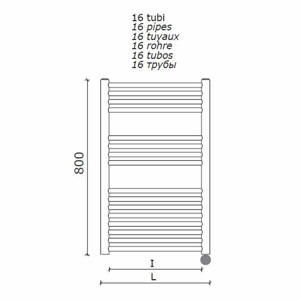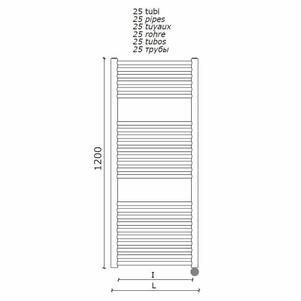 Radiator electric pentru prosoape montat pe perete pentru baie cu design vertical fabricat în Italia.
