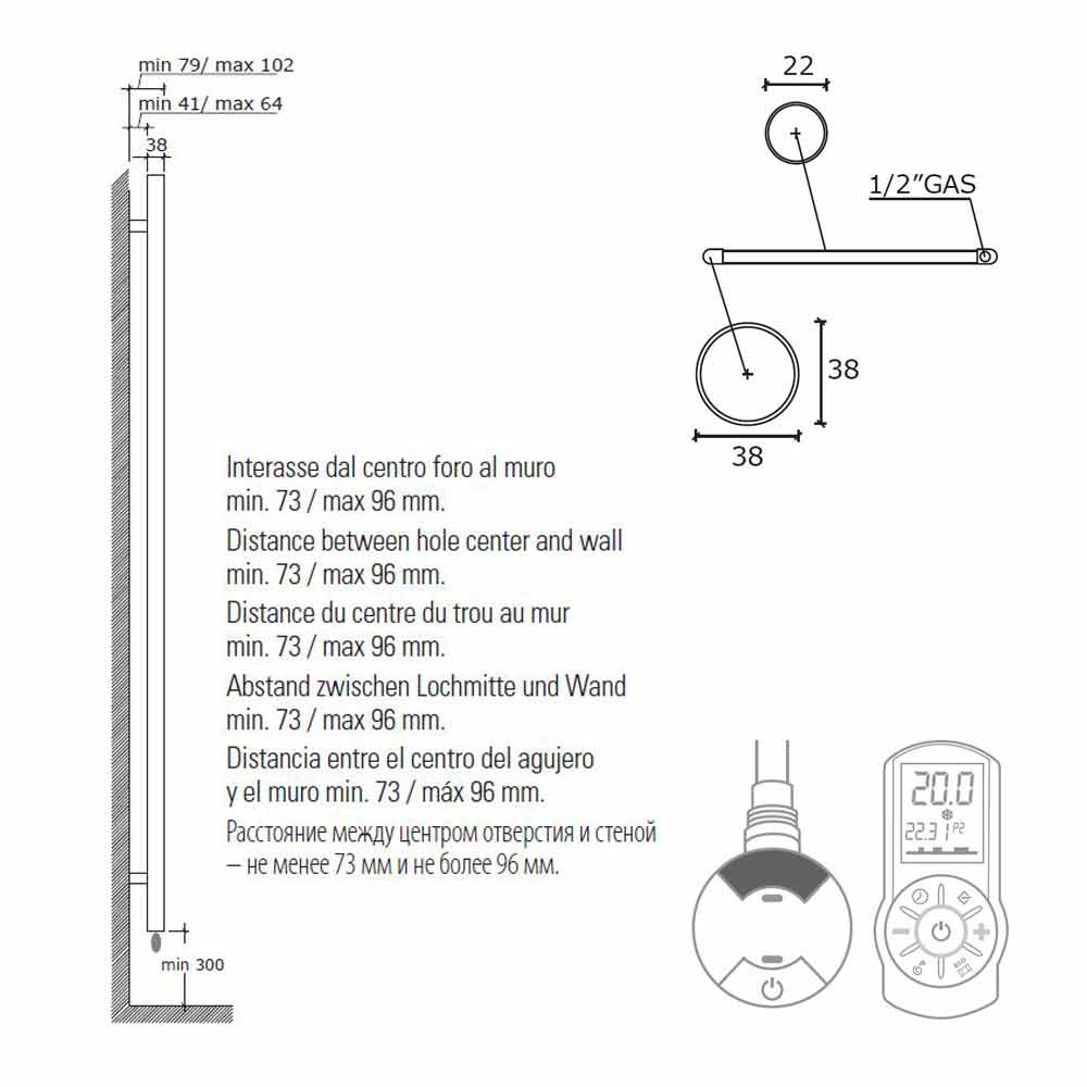 La cerere, sunt disponibile rezistența electrică digitală, capacul de rezistență în același finisaj ca radiatorul sau setul de termostat de cameră cu programare săptămânală și receptor de frecvență radio pentru cutia de perete.