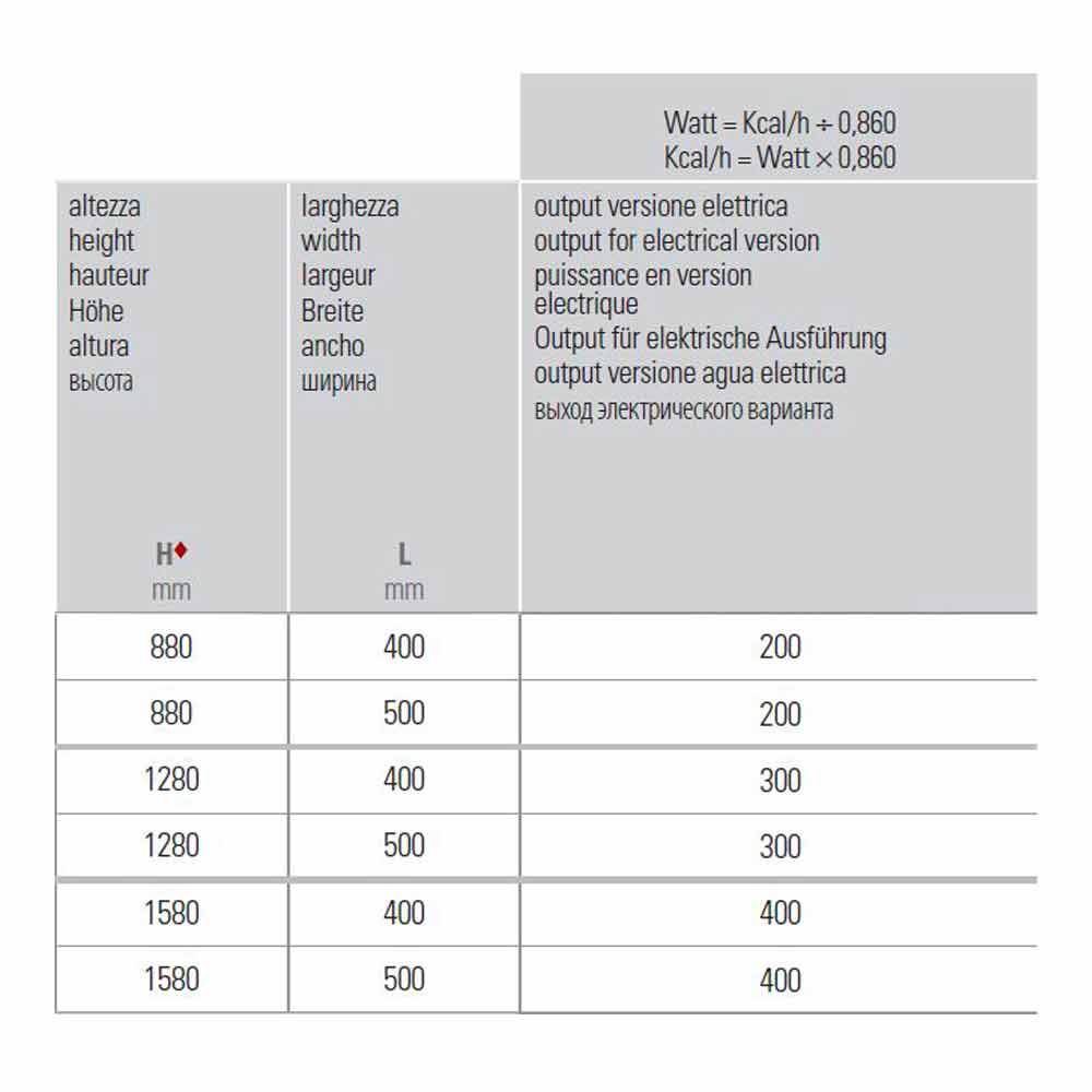 - H 1200 x L 500 x Inter. 462 mm x Randament w 300