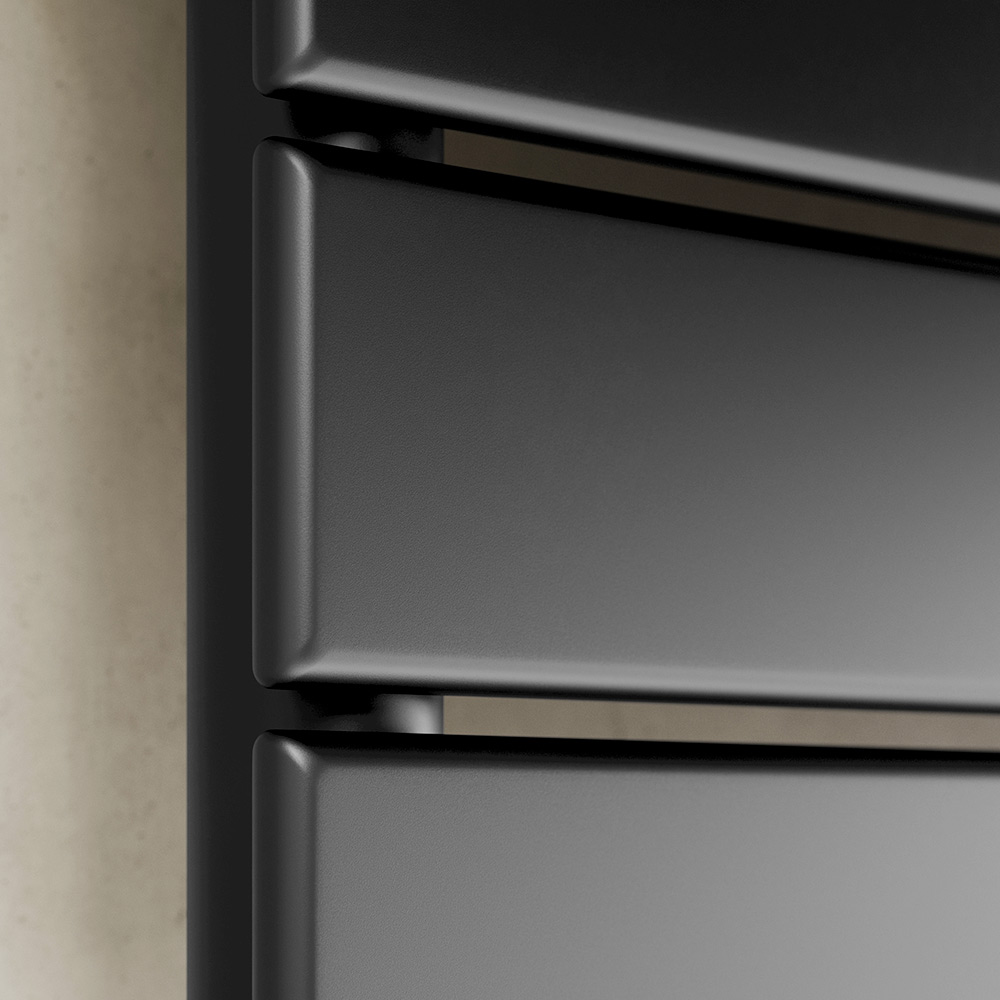 Acest încălzitor de prosoape negru reprezintă eleganță pură și rafinament în fiecare detaliu. Designul său modern și liniile geometrice curate adaugă o notă de stil contemporan oricărei băi, integrându-se perfect cu diverse stiluri de decorare, de la cele mai minimaliste la cele mai îndrăznețe.
