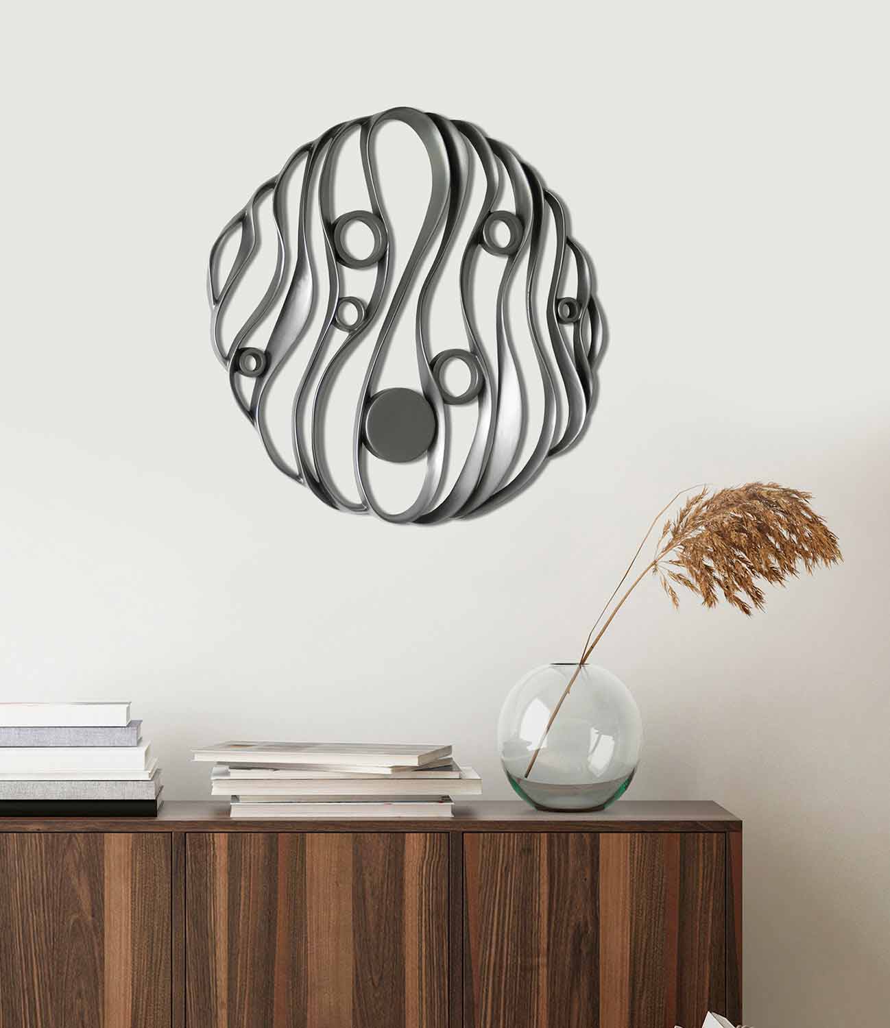 Decoratiuni moderne de perete de design din ceramică perforată de culoare neagră sau antracit, pentru sufragerie sau dormitor realizate în Italia.