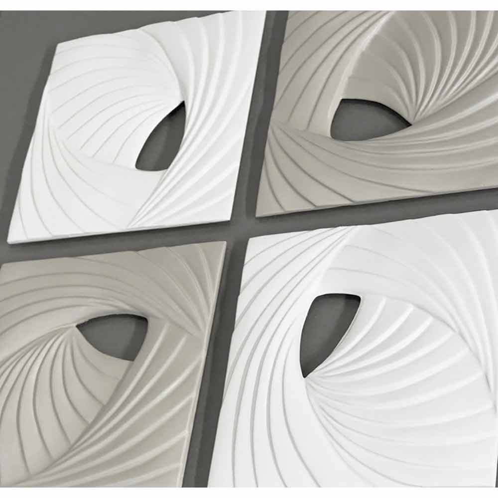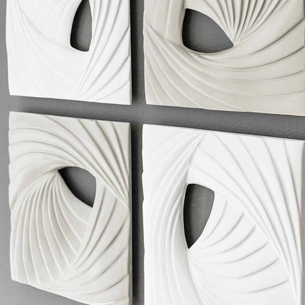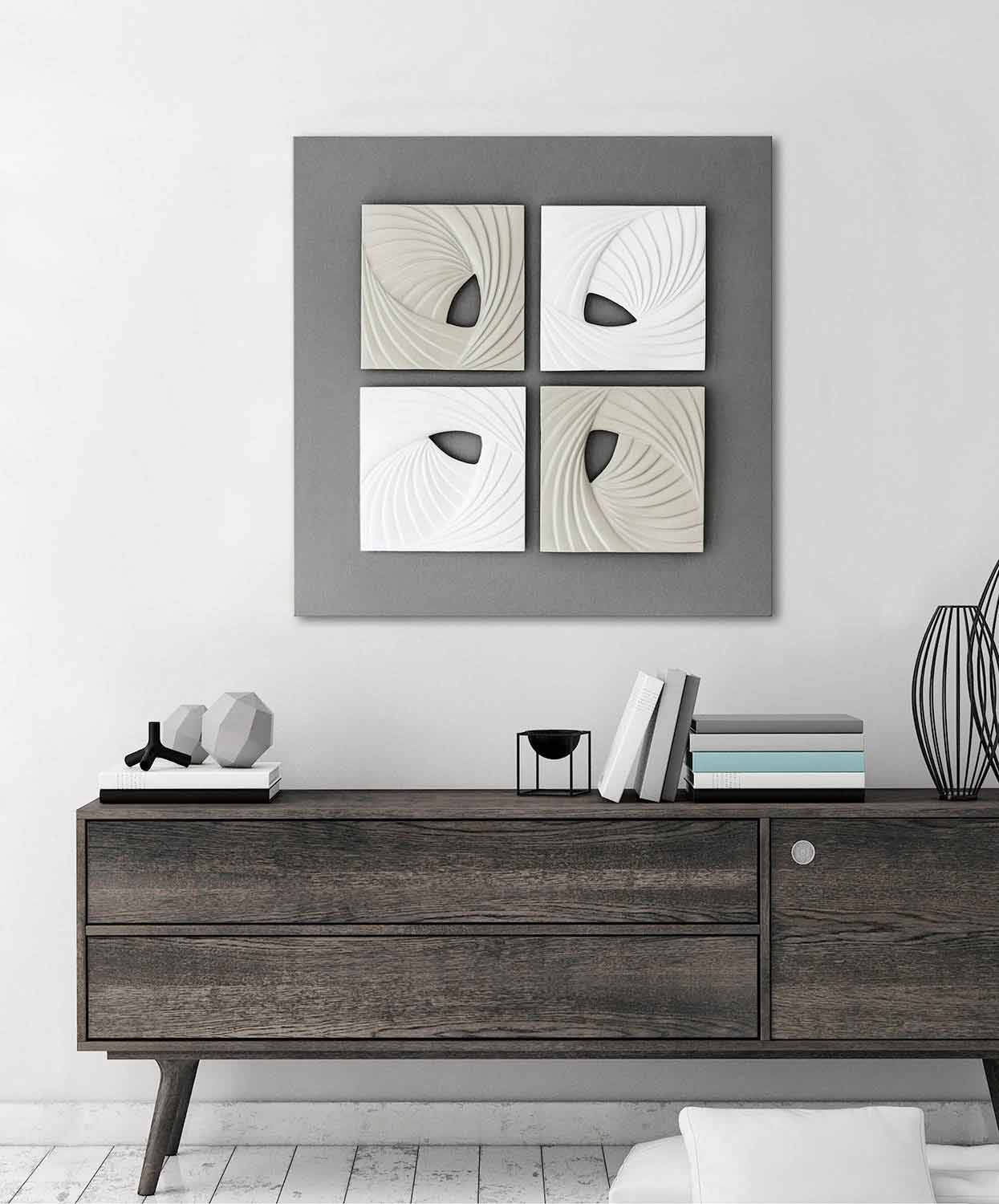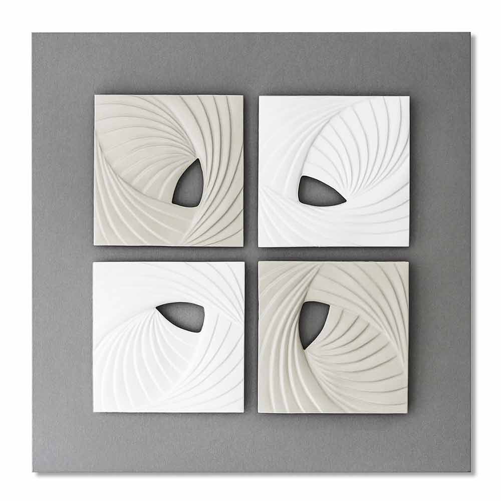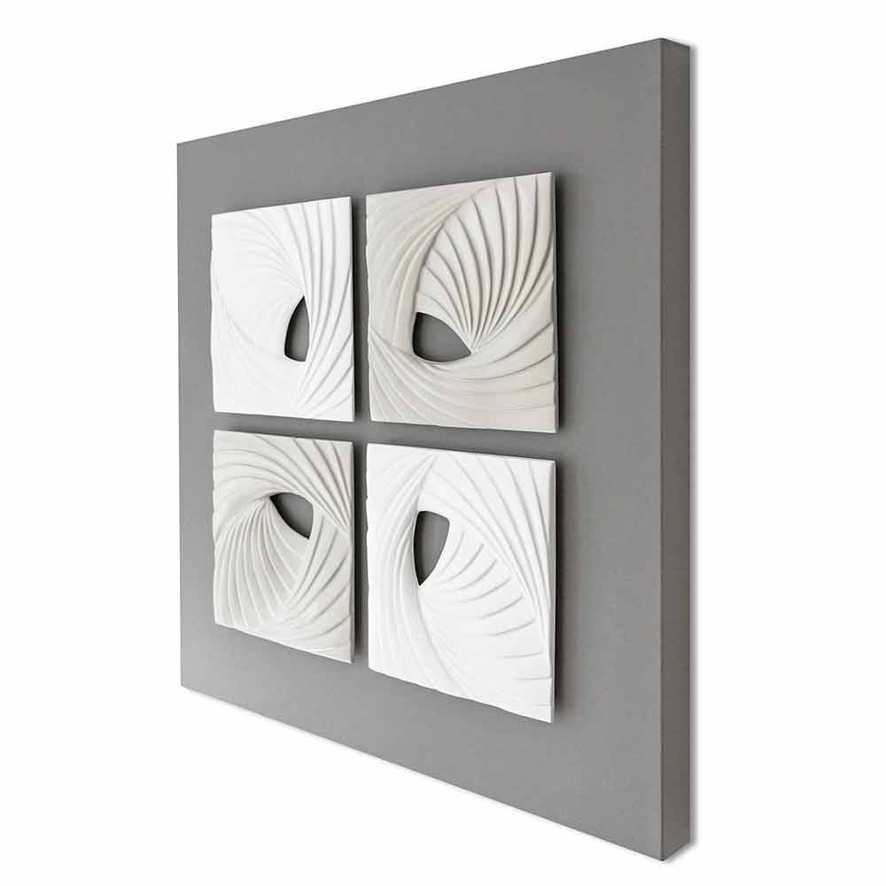 Decorațiune modernă de perete, basorelief de ceramică albă și gri, înlocuită pe pânză, realizată în Italia.