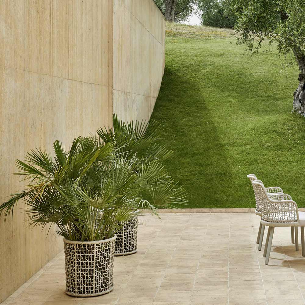 Jardinieră de exterior cu farfurie compusă dintr-o structură de aluminiu vopsită cu pulbere și frânghie cu finisaj bej țesute manual . Caracterizat printr-un design esential , acest produs este conceput si conceput pentru a reprezenta o solutie practica si in acelasi timp sa imbogateasca orice spatiu exterior cu o nota de personalitate moderna si rafinata .