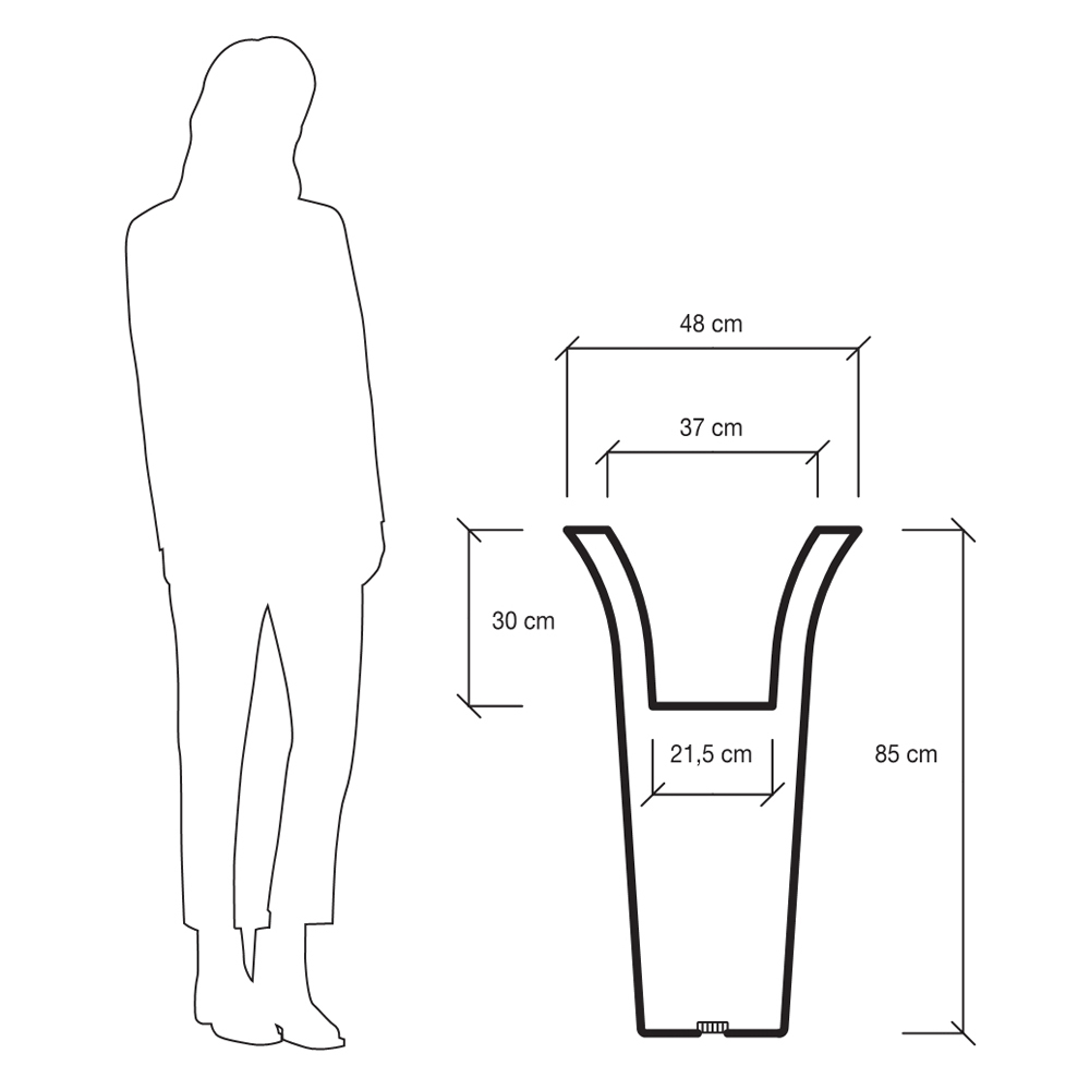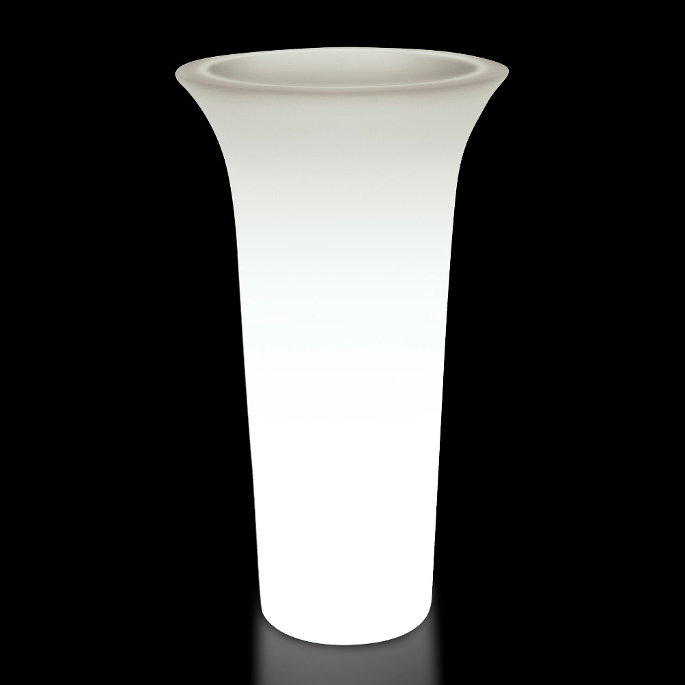 NB In varianta alb sidefat cu lumina, vaza iluminata este livrata cu un kit de iluminat pre-asamblat: cablu negru de 2,5 metri pentru uz interior si exterior, suport de lampa cu soclu E27.