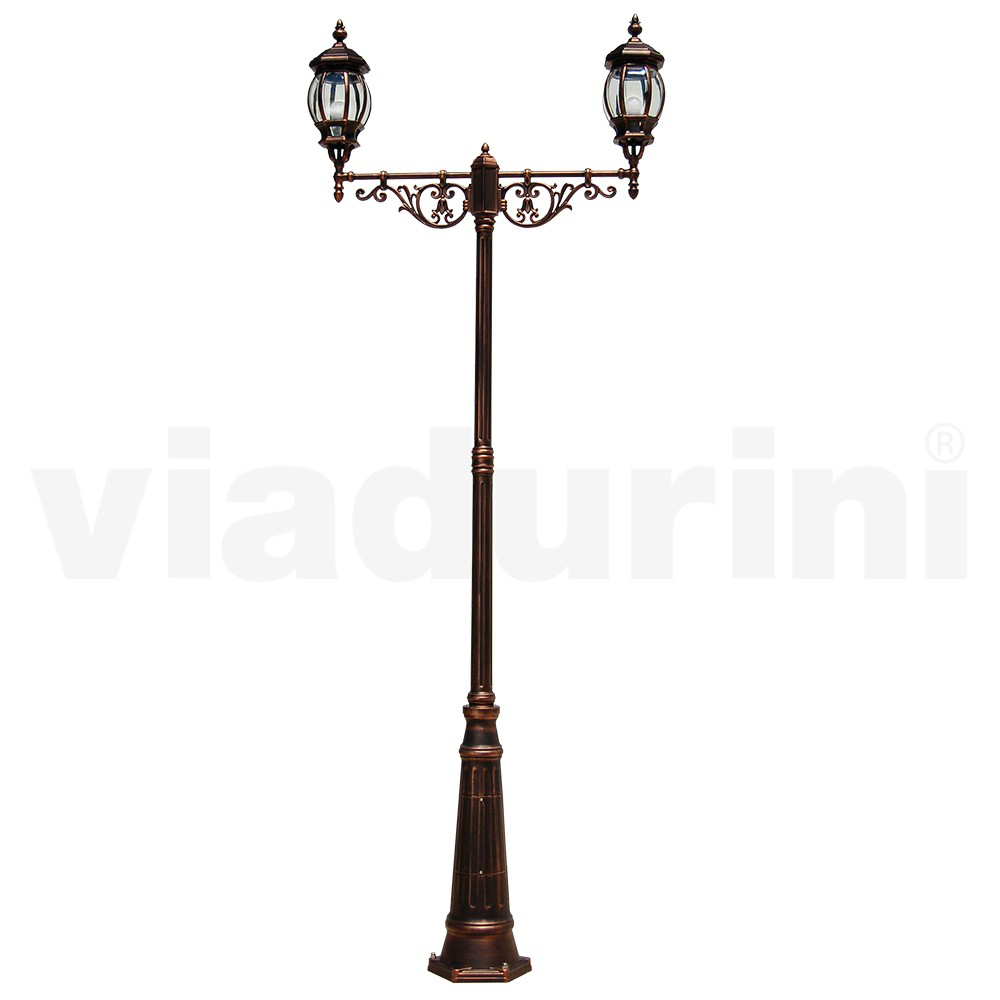 Lampa stradala in stil vintage cu 2 lumini cu structura din aluminiu Made in Italy.