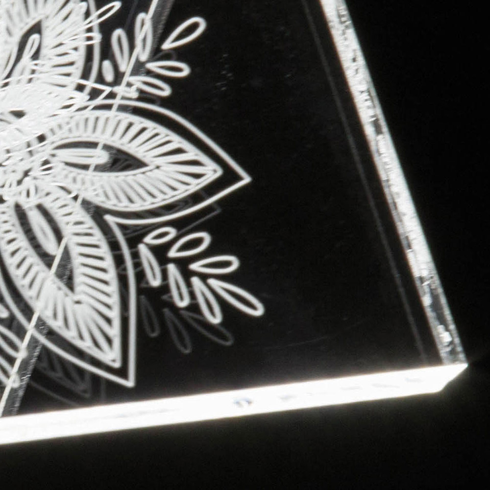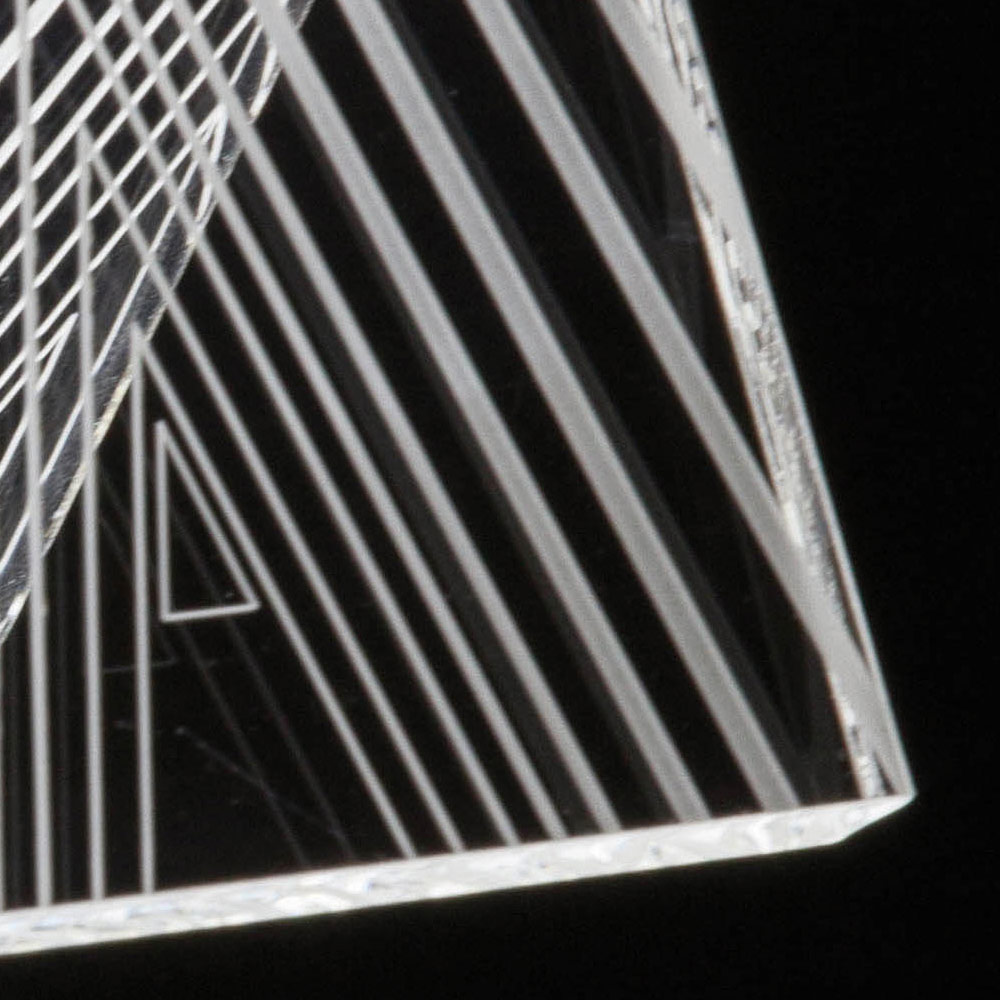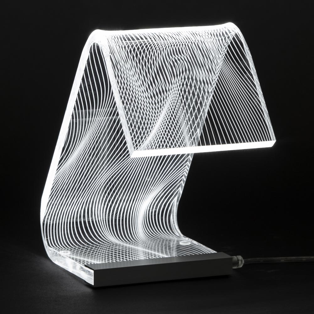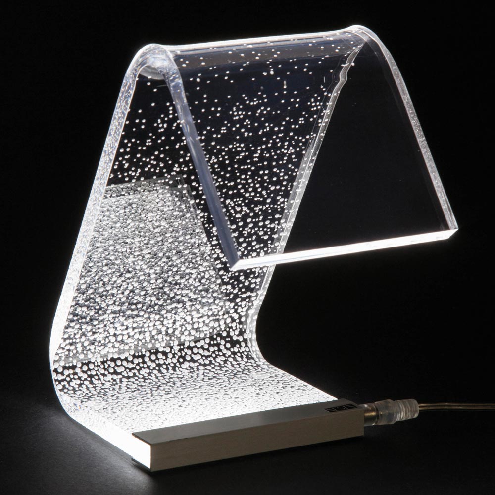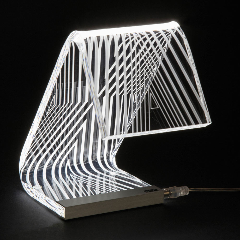 Lampa de masa din cristal acrilic transparent cu decoratiuni laser, 2 marimi fabricata in Italia.