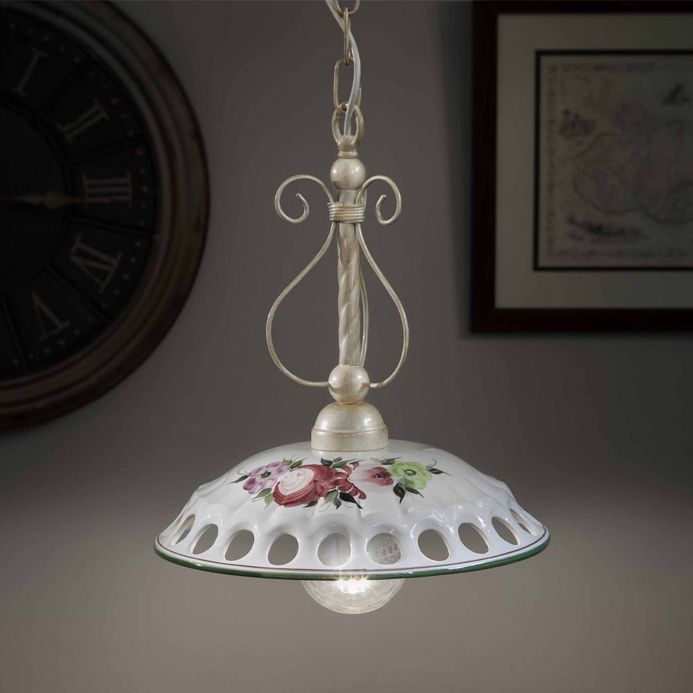 Plafoniera din metal si ceramica lucrata manual cu benzi, fabricata in Italia de Ferroluce.
