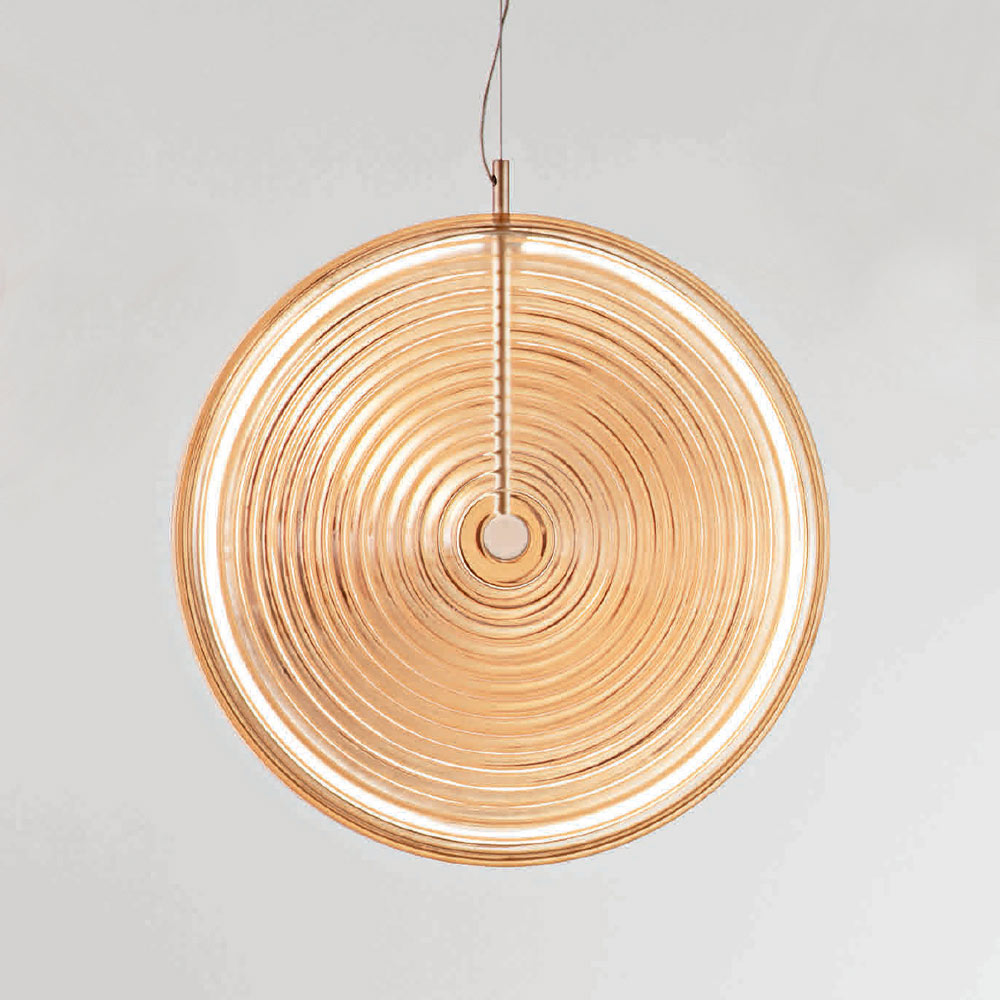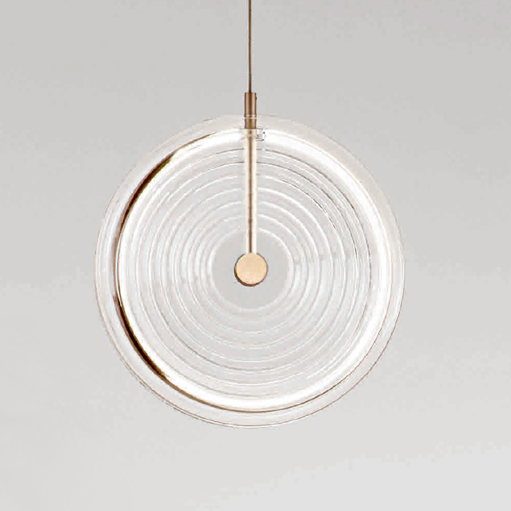 metal vopsit cu finisaj auriu, sticla decorata cu linii concentrice cu lumina LED si