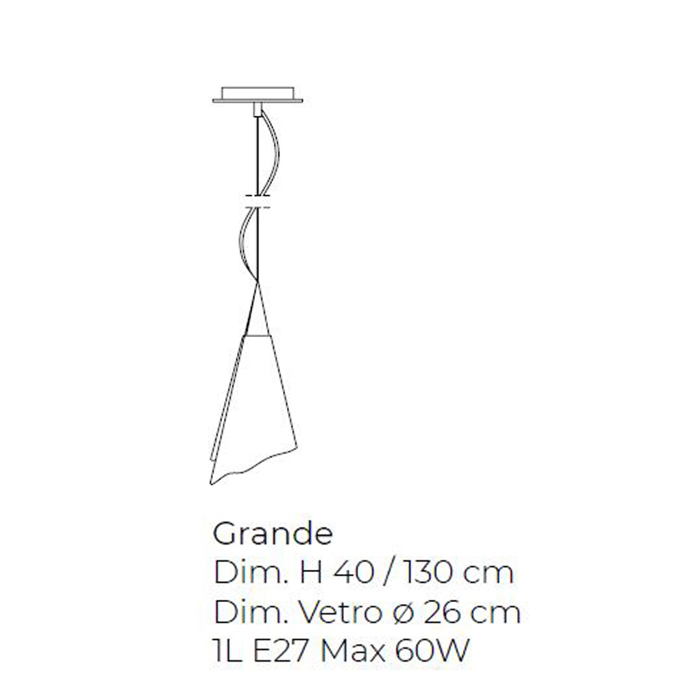 Lampă cu pandantiv din sticlă venețiană suflată manual cu decor iris.