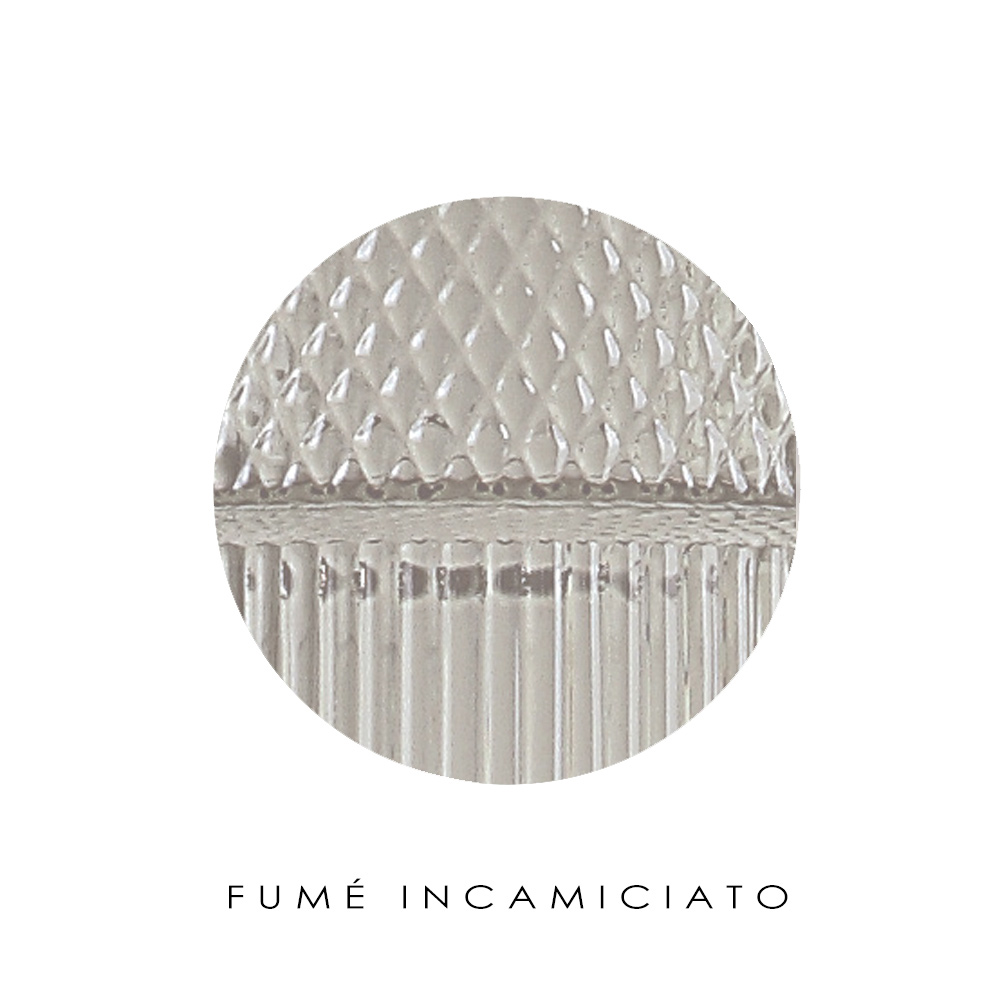 Prelucrare Rigata : tehnică de prelucrare care implică utilizarea unei matrițe cu linii mici și gravare cu romburi în care sticla este suflată pentru a crea un efect vizual și tactil minunat.