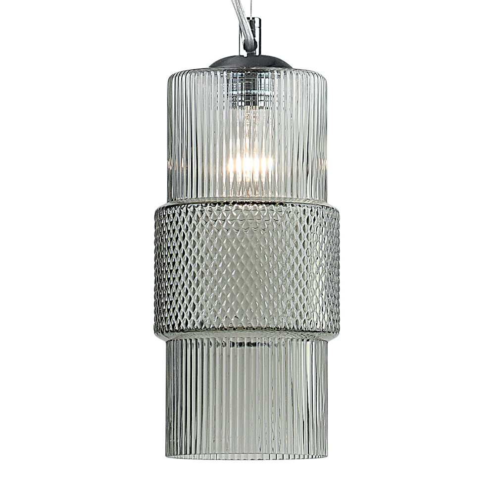 Lampă cu suspendare realizată manual din sticlă venețiană suflată și metal cromat.