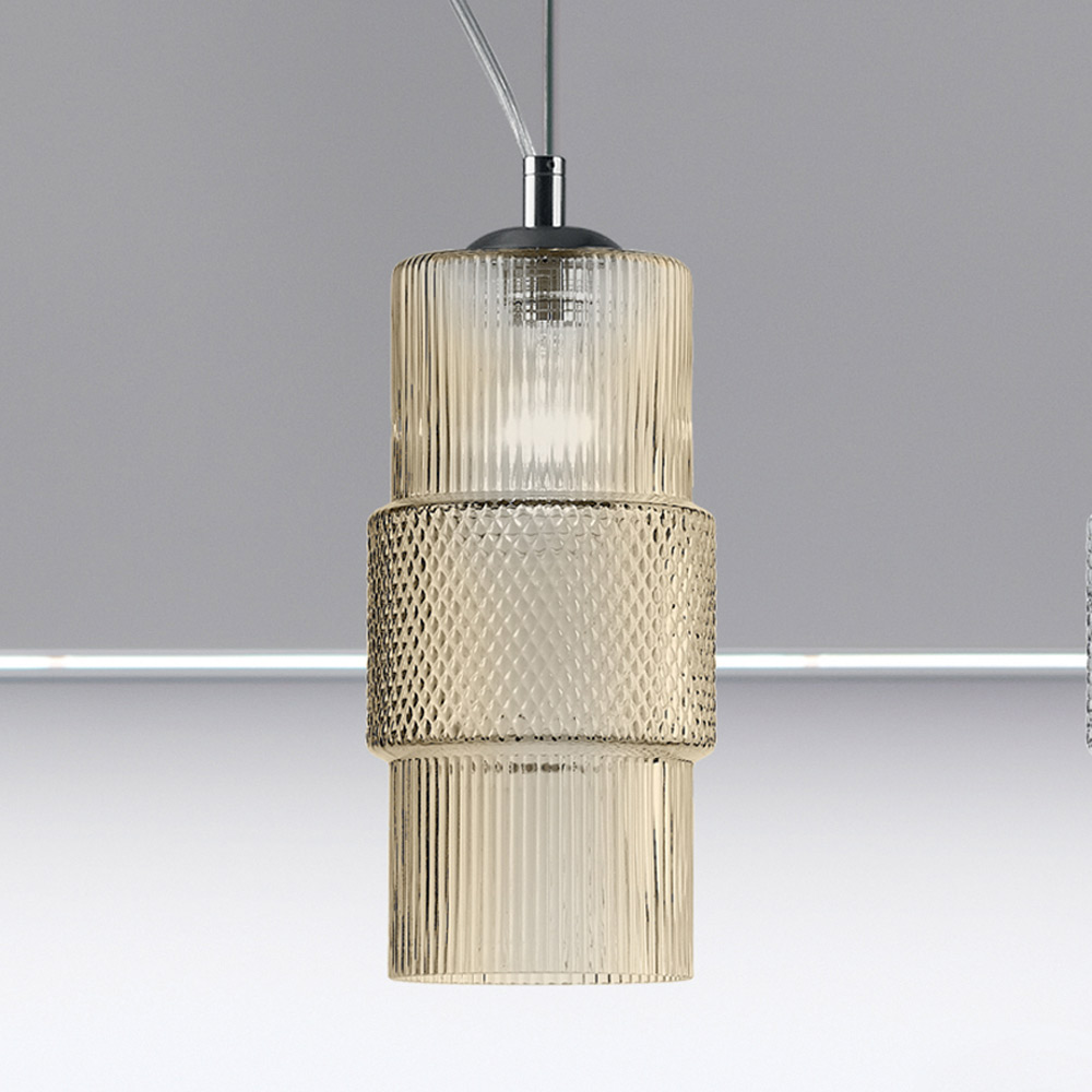 sticlă stratificată sau transparentă cu prelucrare în dungi caracterizată printr-o estetică romantică și capabilă să ofere o iluminare fascinantă împreună cu jocuri de lumină fără precedent.