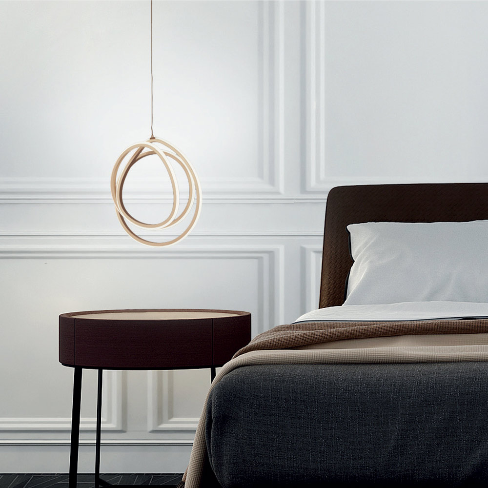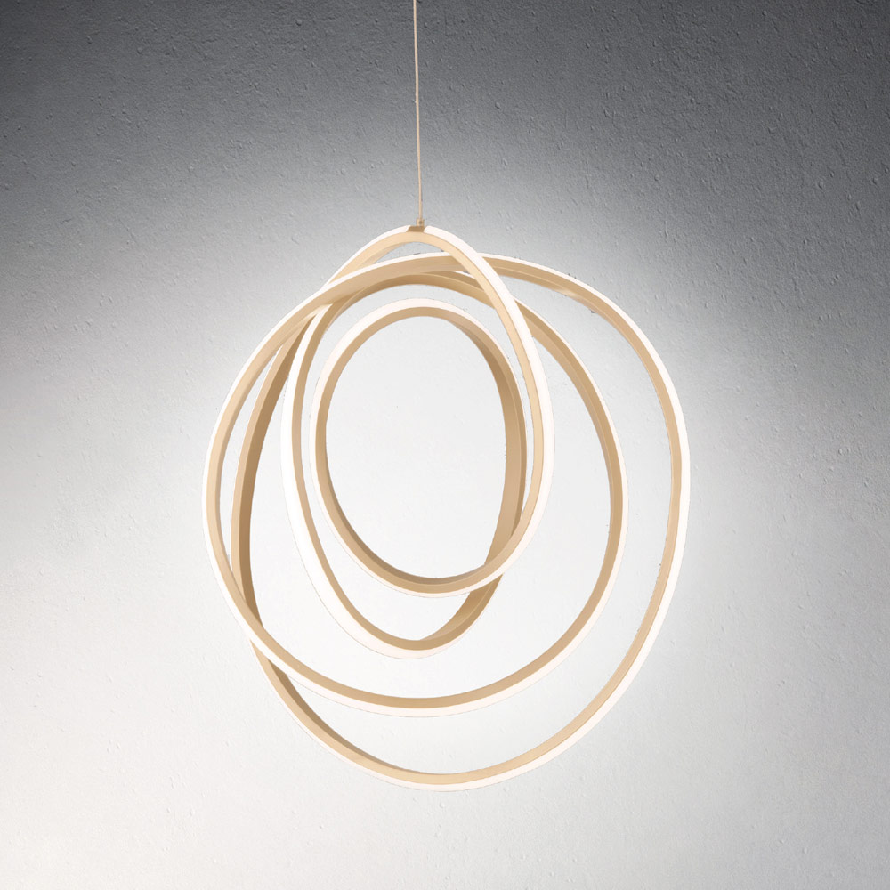 Lampă cu pandantiv cu LED din metal auriu cu design elegant și luxos.