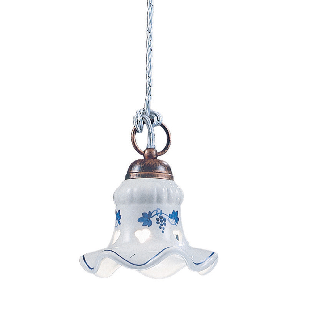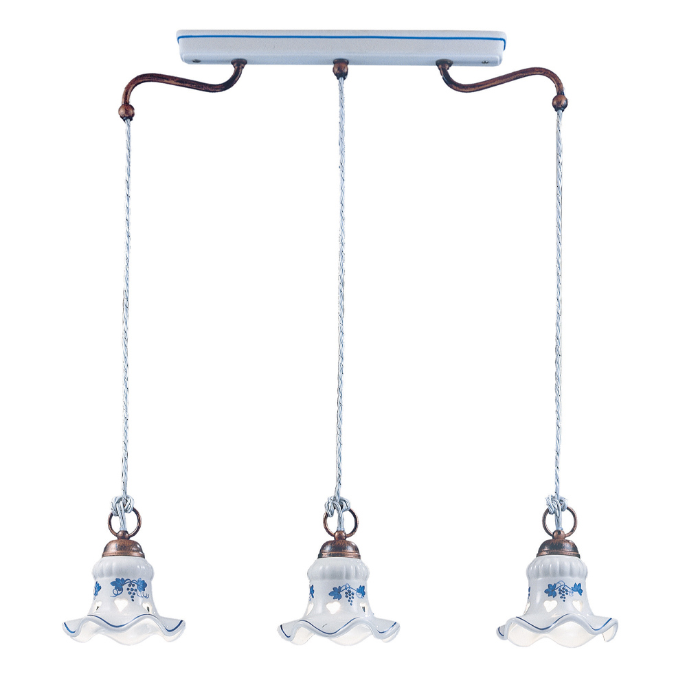 Lampa suspendata cu 3 lumini din fier si ceramica decorata manual, realizata in Italia de Ferroluce.
