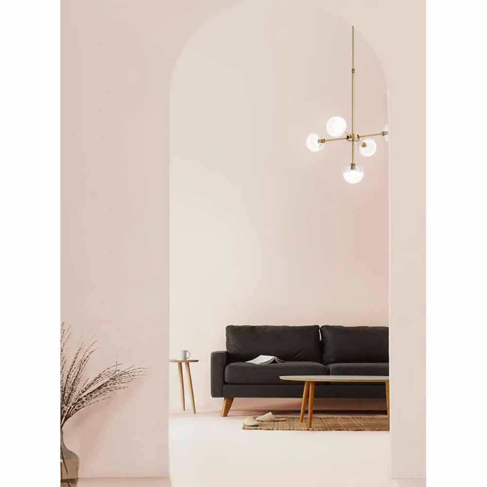, realizată din alamă naturală cu sfere de sticlă transparentă și sablată.