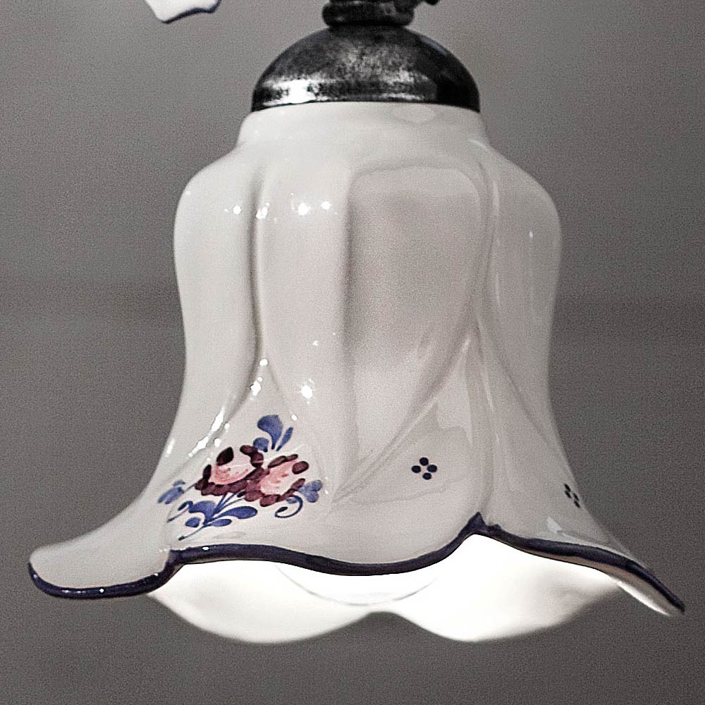 Lampa suspendata din metal si ceramica cu trandafiri pictati manual realizata in Italia de Ferroluce.