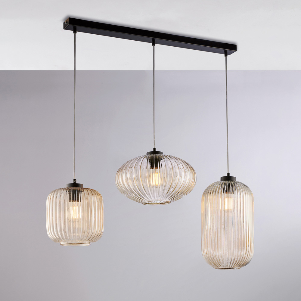 Lampă de design cu 3 lumini din sticlă și metal, fabricată în Italia - Tucana