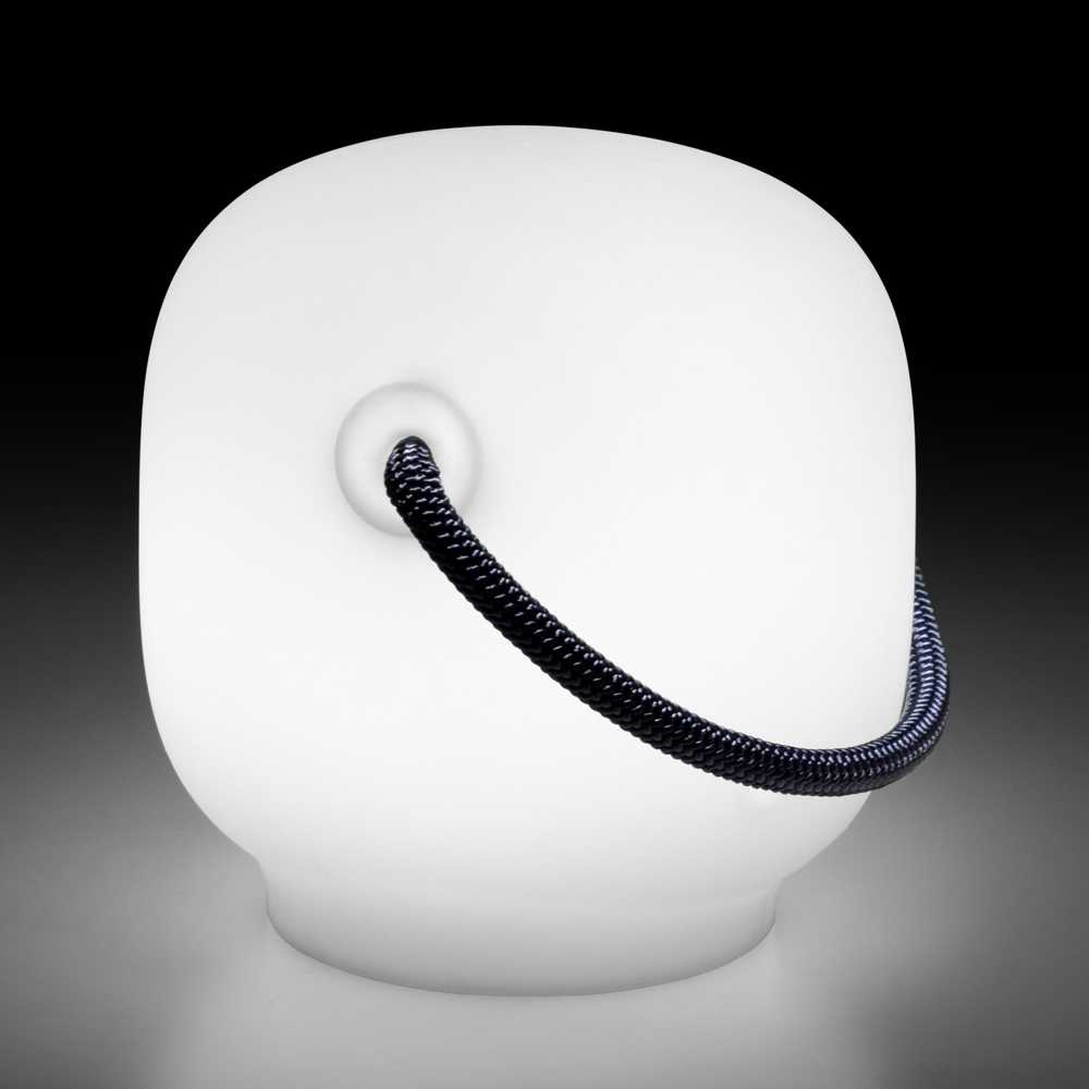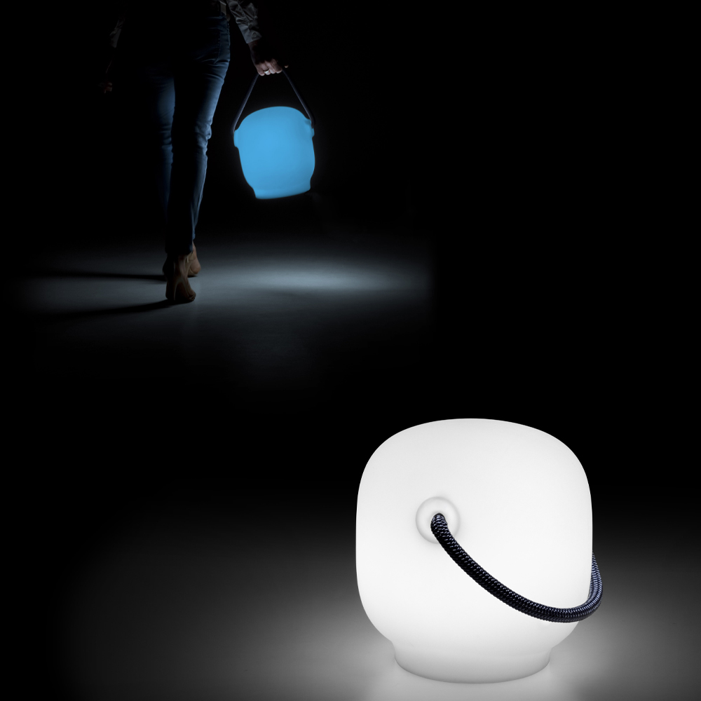 Lampă de exterior fabricată în întregime în Italia, din polietilenă finisată mat, dotată cu mâner și kit practic de lumină LED RGB . O lampă portabilă cu dimensiuni reduse care creează o lumină atmosferică în orice context stilistic. Particularitatea sa este alimentarea cu energie printr-o baterie internă care permite, împreună cu mânerul practic de frânghie colorată , să faciliteze mișcarea, creând astfel un adevărat felinar reumplibil . Designul său modern și avangardist îl face o soluție perfectă atât pentru spațiile domestice în aer liber, cât și pentru mediile contractuale în care să se joace cu diferite stiluri și estetică pentru un rezultat exclusiv și rafinat .