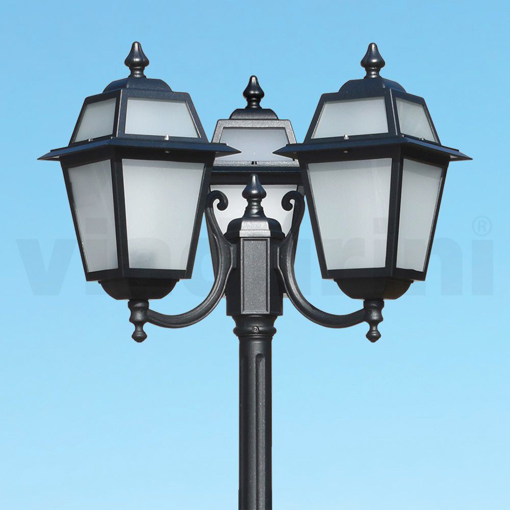 Această lampă stradală din aluminiu turnat cu finisaj antracit este o alegere elegantă pentru orice cadru exterior. Cu un design clasic și elegant, prezintă detalii lucrate care evocă o atmosferă de altădată. Cele 3 felinare, cu atenție la cele mai mici detalii, răspândesc o lumină caldă și blândă, ideală pentru a crea o potecă luminoasă în grădina dumneavoastră sau pentru a delimita clasic o zonă de relaxare exterioară. Soliditatea și frumusețea se reunesc în această lampă stradală, concepută să reziste în timp și să reziste agenților atmosferici. Eleganta si functionala , va fi semnatura luminoasa a spatiului dumneavoastra exterior.